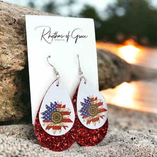 Patriotic Glitter Teardrop Earrings - Stylish Red, White & Blue Accessory
