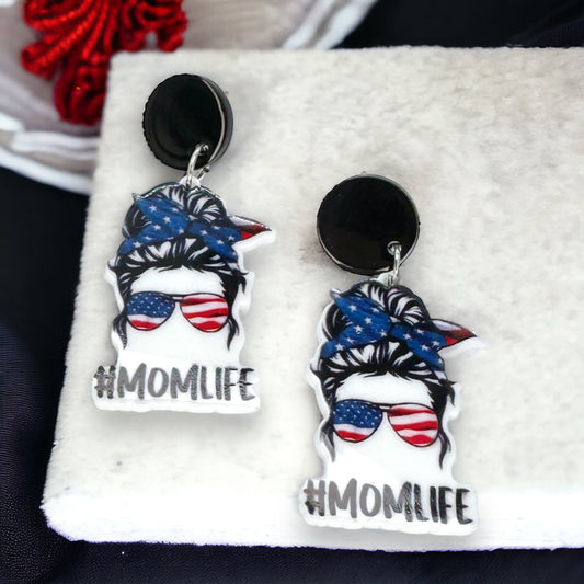 Patriotic Mom Earrings - Stainless Steel & Acrylic, Perfect for #MomLife