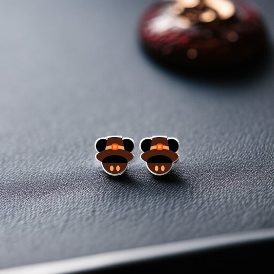 Thanksgiving Chic: Adorable Mouse Ears Pilgrim Hat Stud Earrings!