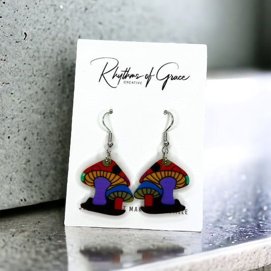 Handcrafted Colorful Mushroom Acrylic Earrings - Whimsical Nature-Inspired Jewelry