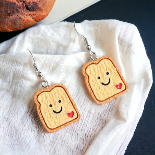 Cartoon Toast Dangle Earrings - Whimsical Food Jewelry for Quirky Fashion