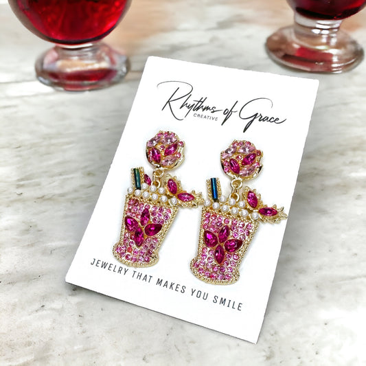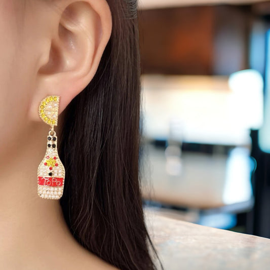 Topo Chico Earrings - Seltzer, Summer Cocktail, Drink Earrings, Rhinestone Earrings