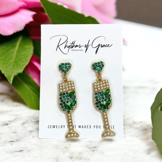 Sparkle & Sip: Wine Glass Earrings - Pink & Green Glam 🍷