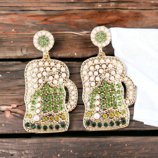 Sparkling Rhinestone Beer Mug Earrings – Cheers to Style in Pink & Green!