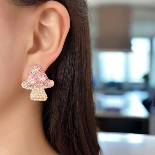Sparkle in Style with Our Rhinestone Mushroom Earrings!