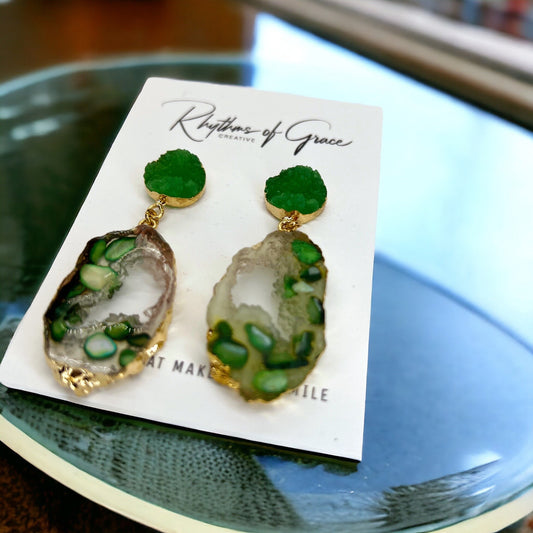 Sparkle & Rock: Mesmerizing Geode Earrings in Purple or Green!