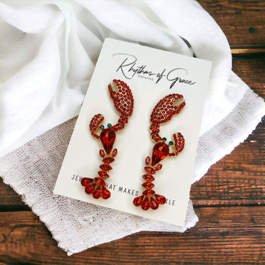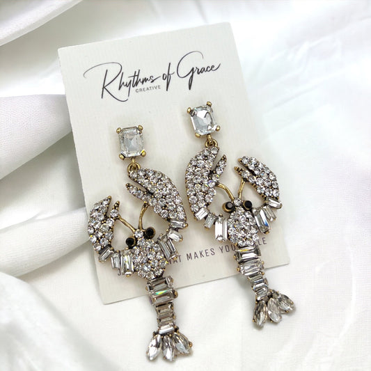 Catch the Sparkle: Rhinestone Crawfish Earrings for a Dazzling Crawfish Boil!