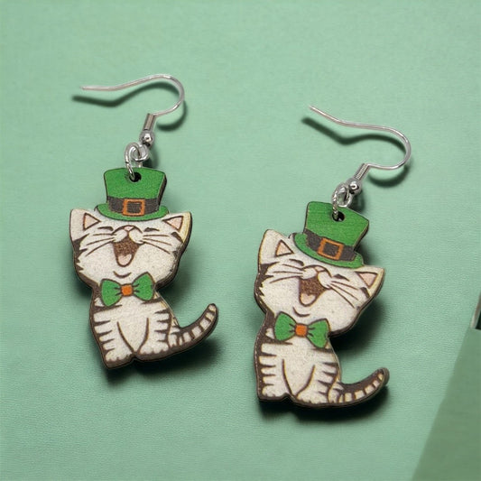 Lucky Cat Earrings - Purr-fectly Festive for St. Patrick's Day! 🍀