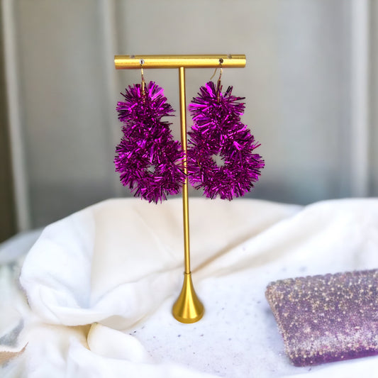 Tinsel Time: Hot Pink Dangle Earrings for Unforgettable Sparkle!