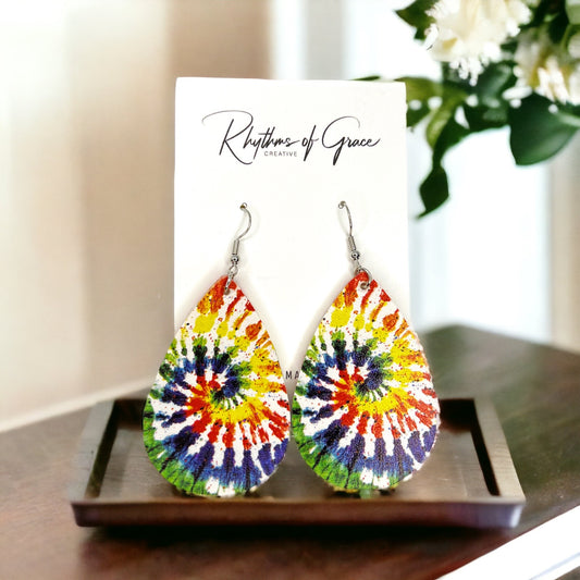 Vibrant Tie Dyed Teardrop Dangle Earrings: Boho Chic Rainbow Style!
