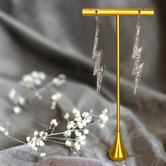 Rhinestone Lightning Earrings - Silver Dangle Earrings, Delicate Earrings, Lightning Jewelry