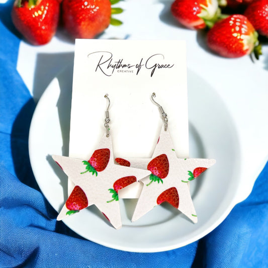 Strawberry Earrings - Star Earrings, Strawberry Accessories, Handmade Earrings, Leather Earrings