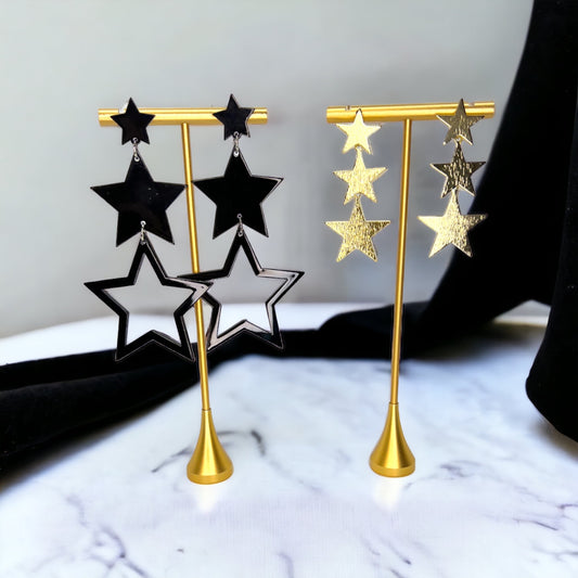 Dangle Star Earrings - Gold Glitter, Gold Star Earrings, Black Star Earrings, Handmade Earrings, Rhinestone Earrings, Star Accessories