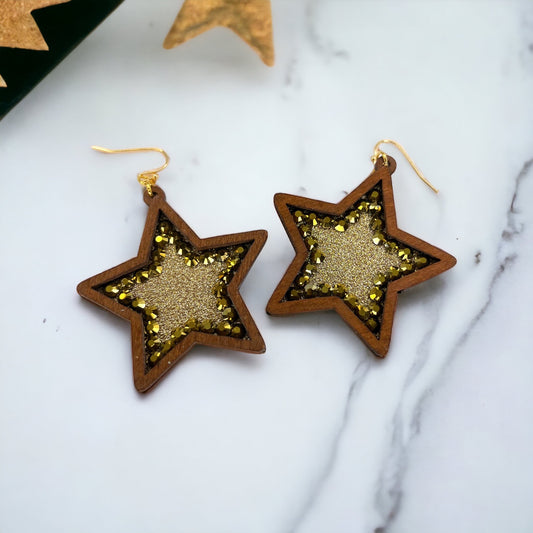 Boho Star Earrings - Gold Glitter, Gold Star Earrings, Handmade Earrings, Rhinestone Earrings, Star Accessories