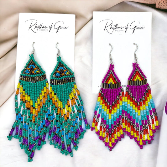 Regular price $15.00 USDRegular priceUnit price / per$22.00 USDSale price $15.00 USDBoho Beaded Earrings - Boho Earrings, Bohemian Style, Hot Pink, Beaded Accessories, Handmade Jewelry, Blue Green