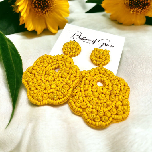 Sunny Blossom Vibes: Beaded Yellow Flower Dangle Earrings!