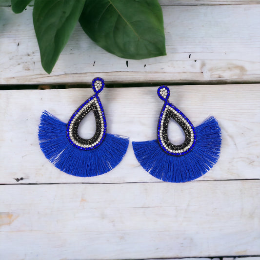 Blue and Black Earrings - Blue Accessories, Rhinestone Earrings, Blue and White Rhinestones, Fringe Earrings