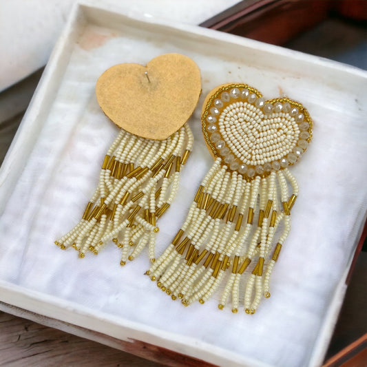 Beaded Heart Earrings - Boho Earrings, Bohemian Style, Kentucky Derby, Beaded Earrings, Beaded Jewelry, Valentine’s Day, Heart Accessories