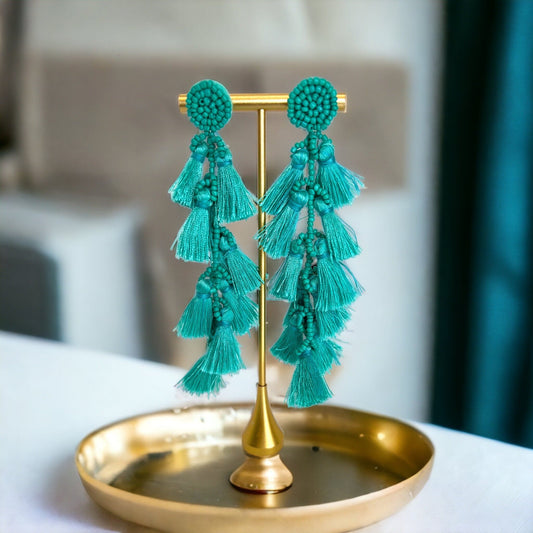 Teal Tassel Beaded Dangle Earrings - A Boho Dream!