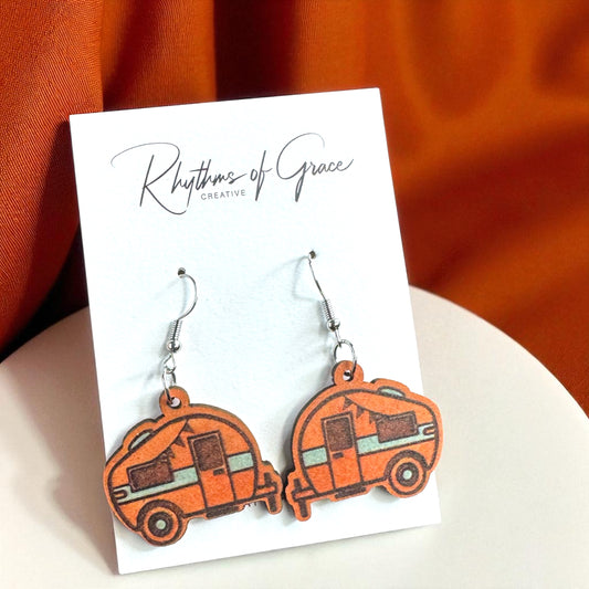 Happy Camper Vibes: Handmade Wooden Camper Dangle Earrings for Your Next Adventure