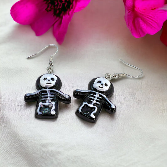 Skeleton Earrings - Halloween Earrings, Skeleton Costume, Halloween Teacher, Black and White