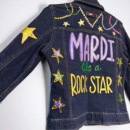 Hand Painted Mardi Gras Jean Jacket - Mardi Gras, Mardi Gras Jacket, New Orleans, Purple Green Gold, Mardi Gras, Parade Outfit, Glitter