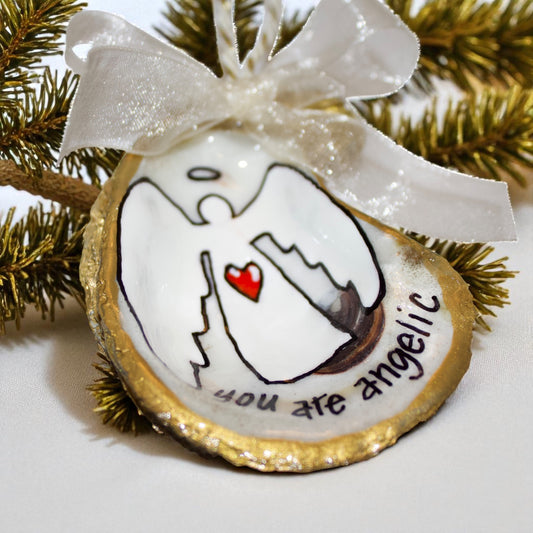 Hand-Painted Oyster Shell Christmas Ornament: "You Are Angelic"