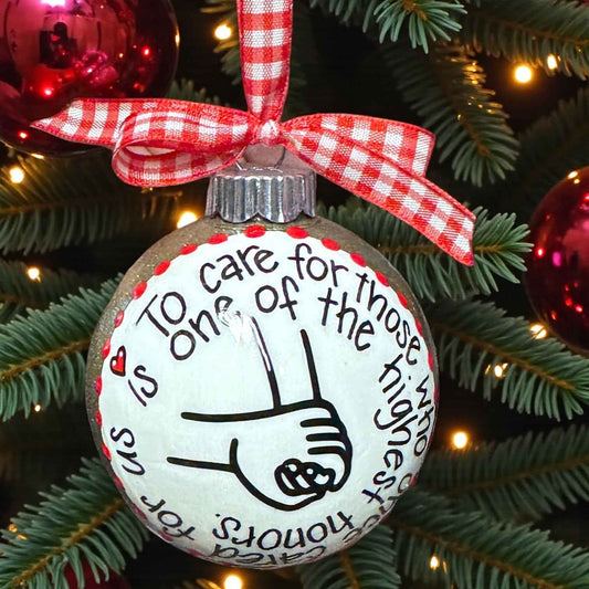 “To Care for Those Who Once Cared for Us” – Hand-Painted Caregiver Ornament