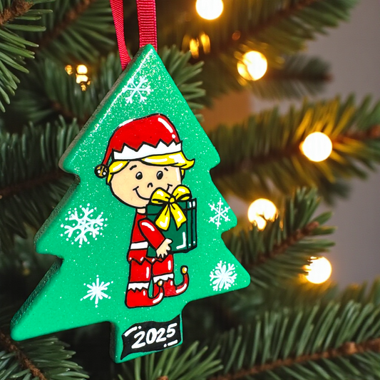 2025 Elf Christmas Tree Ornament – Hand-Painted Wooden Keepsake