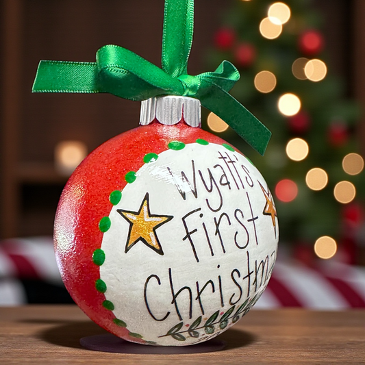 Baby’s First Christmas Ornament | Personalized Keepsake Bauble | Hand-Painted Sparkly Holiday Decoration