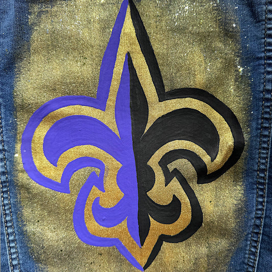 Hand-Painted Jean Jacket: ‘Tis the Season! | Perfect for LSU & Saints Fans | Fashionable Fitted Cropped Denim