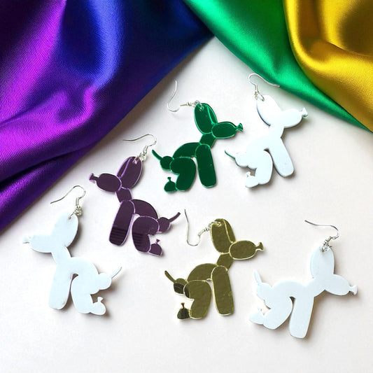 Paw-sitively Fun Mardi Gras Balloon Dog Earrings – Pooping Playfulness in Every Color!