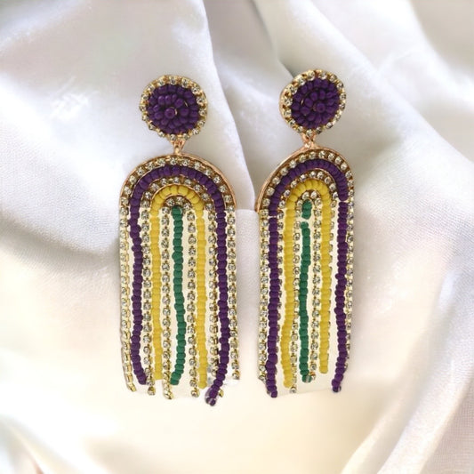 Beaded Mardi Gras Earrings - New Orleans Earrings, NOLA Jewelry, Purple Green Gold, Beaded Jewelry, Mardi Gras Jewelry, Mardi Gras Earrings