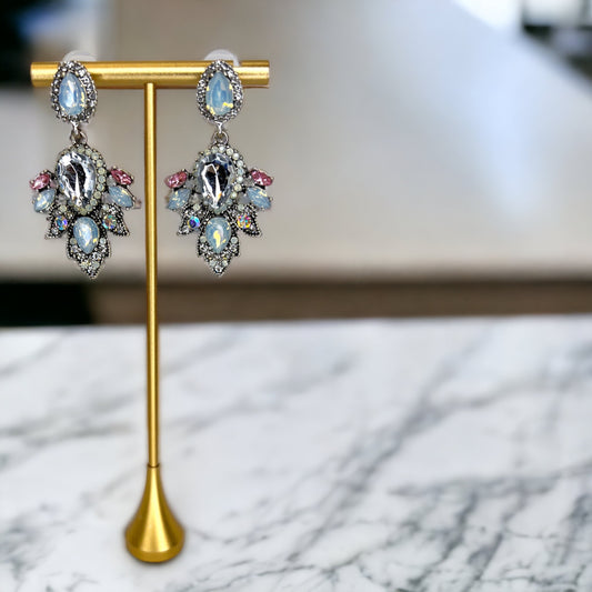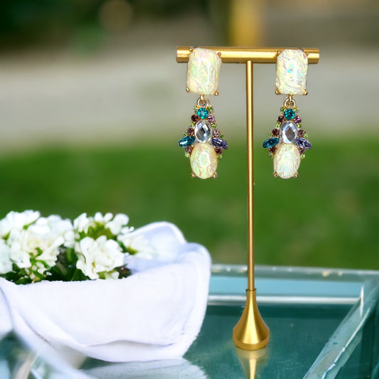Opal Rhinestone Dangle Earrings – Mardi Gras Elegance! ✨