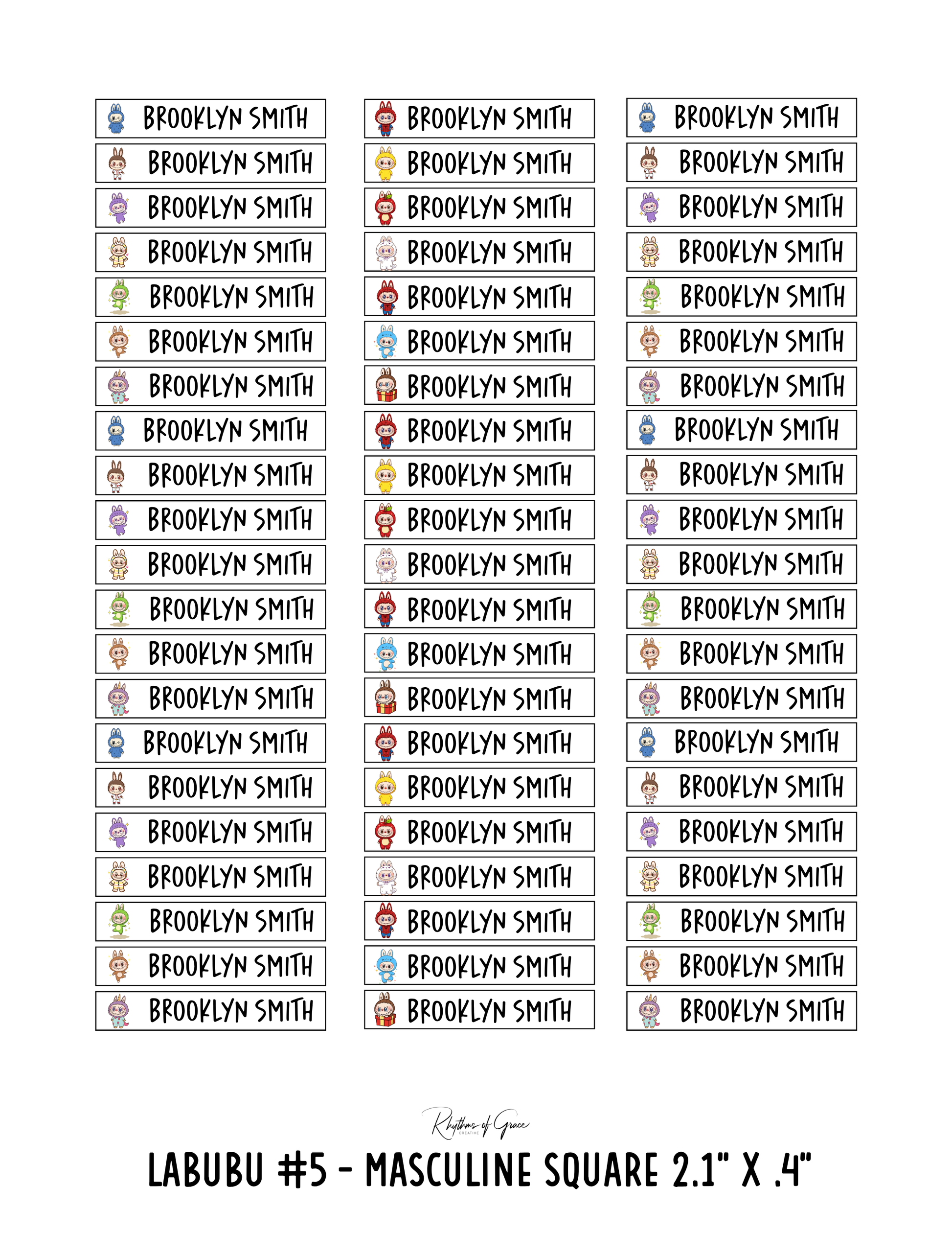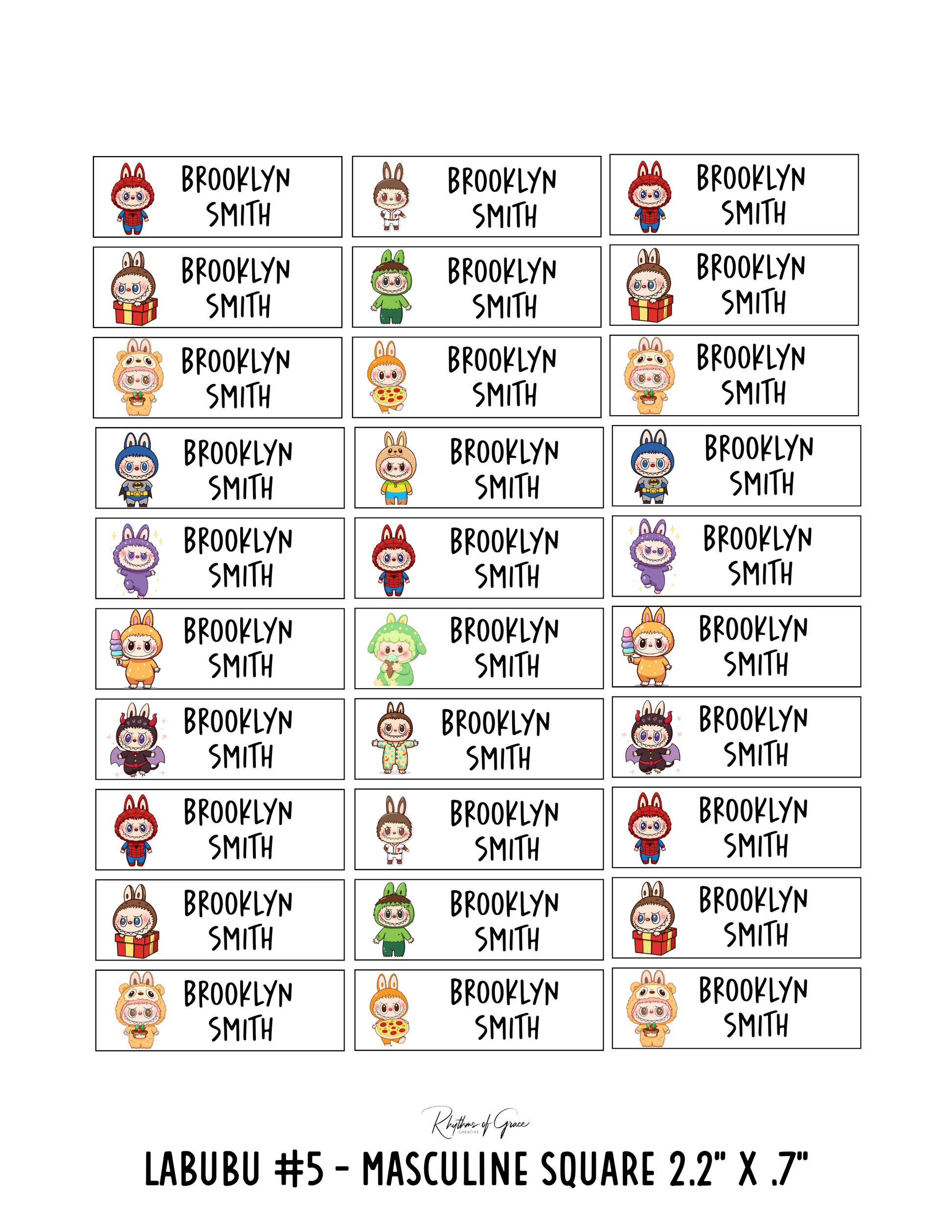Labubu #5 (Masculine) / Rounded Edges / Small Combo: Includes 21 small rounded labels (2.1" x .4") and 21 medium rounded labels (2.2" x .7") - 1 sheet