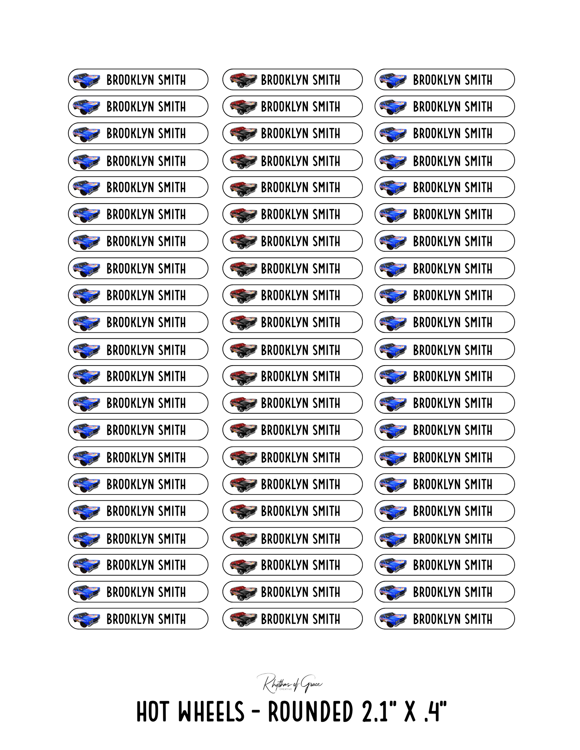 Hot Wheels / Rounded Edges / Small Combo: Includes 21 small rounded labels (2.1" x .4") and 21 medium rounded labels (2.2" x .7") - 1 sheet