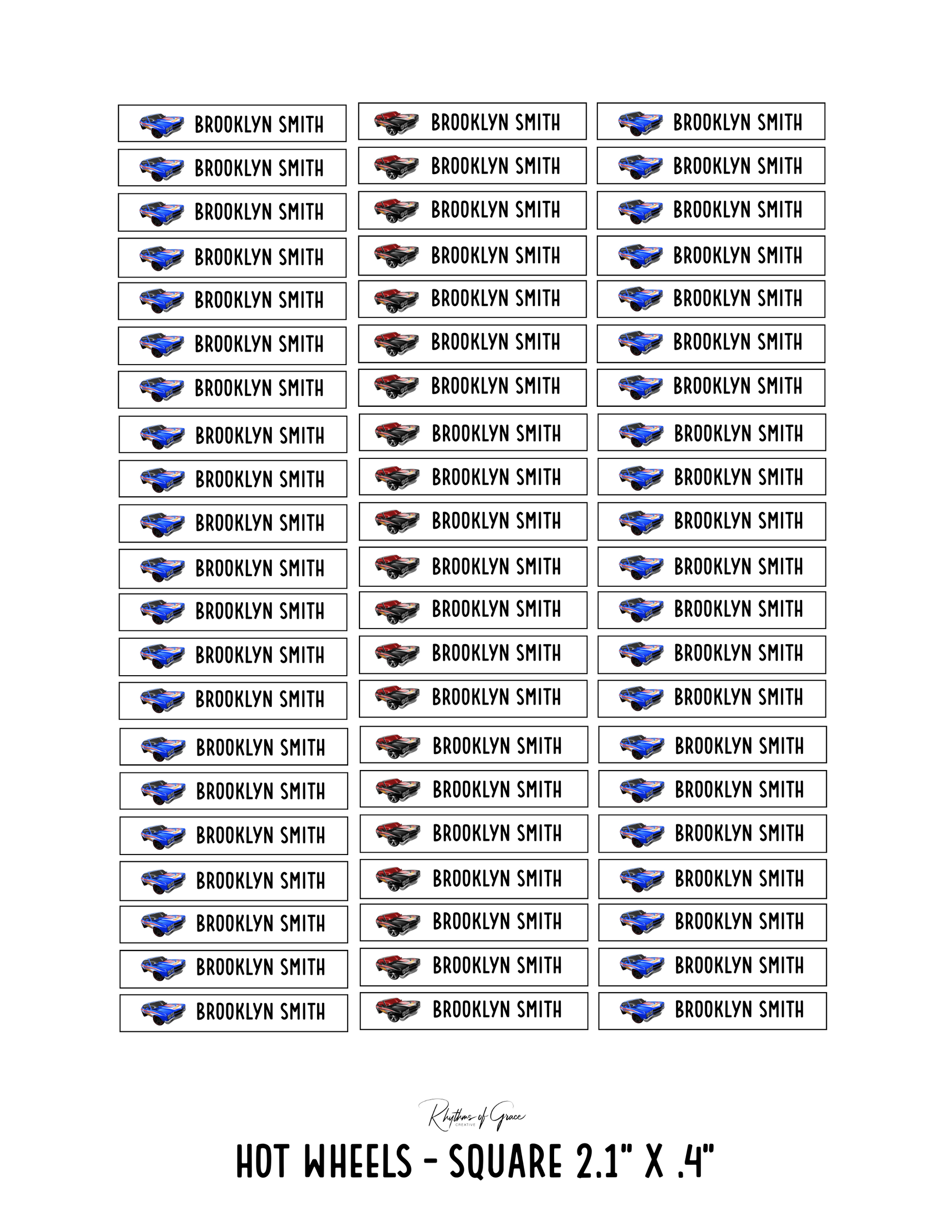 Hot Wheels / Rounded Edges / Medium: 30 medium rounded labels (2.2" x .7") - 1 sheet