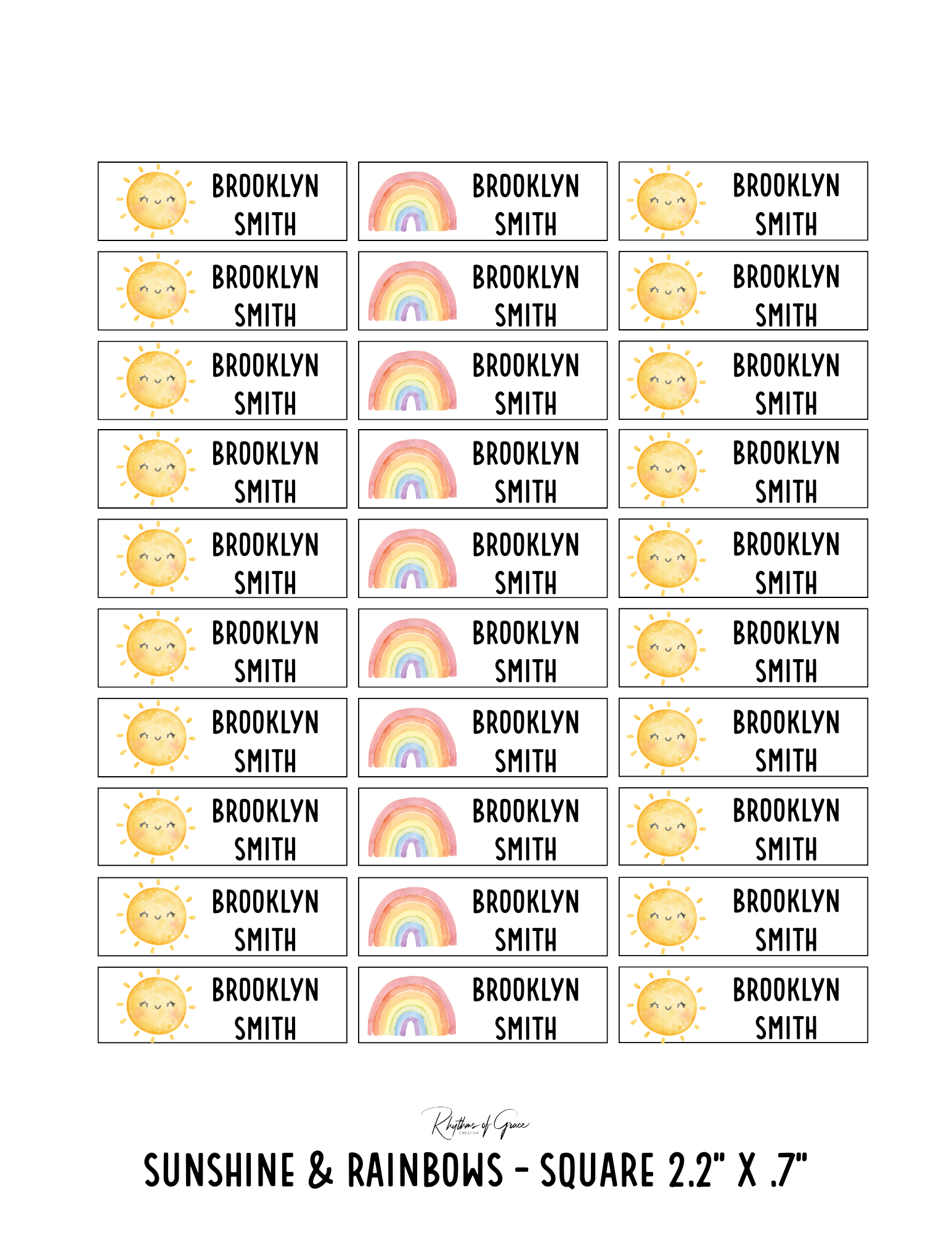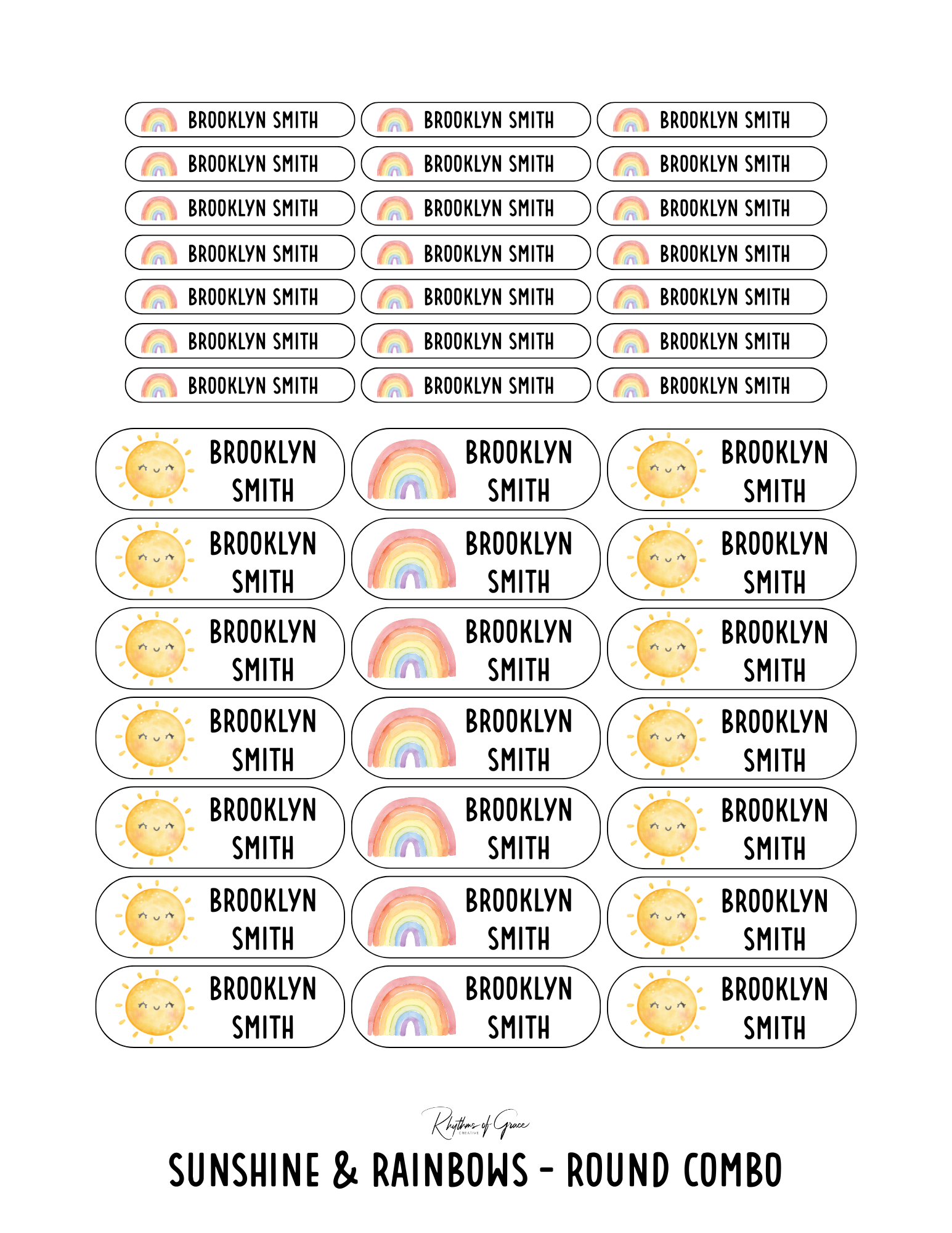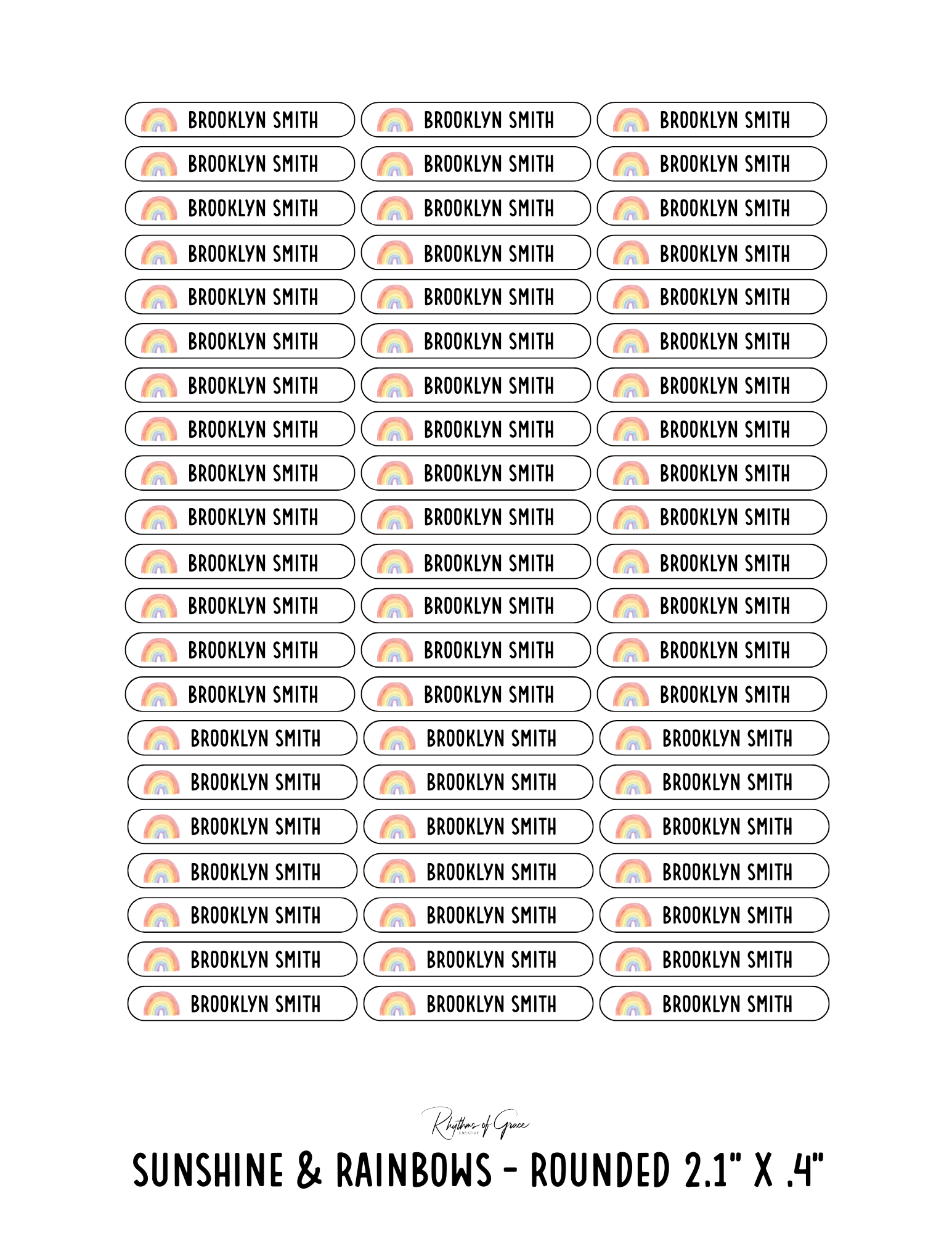 Sunshine & Rainbows / Rounded Edges / Small Combo: Includes 21 small rounded labels (2.1" x .4") and 21 medium rounded labels (2.2" x .7") - 1 sheet