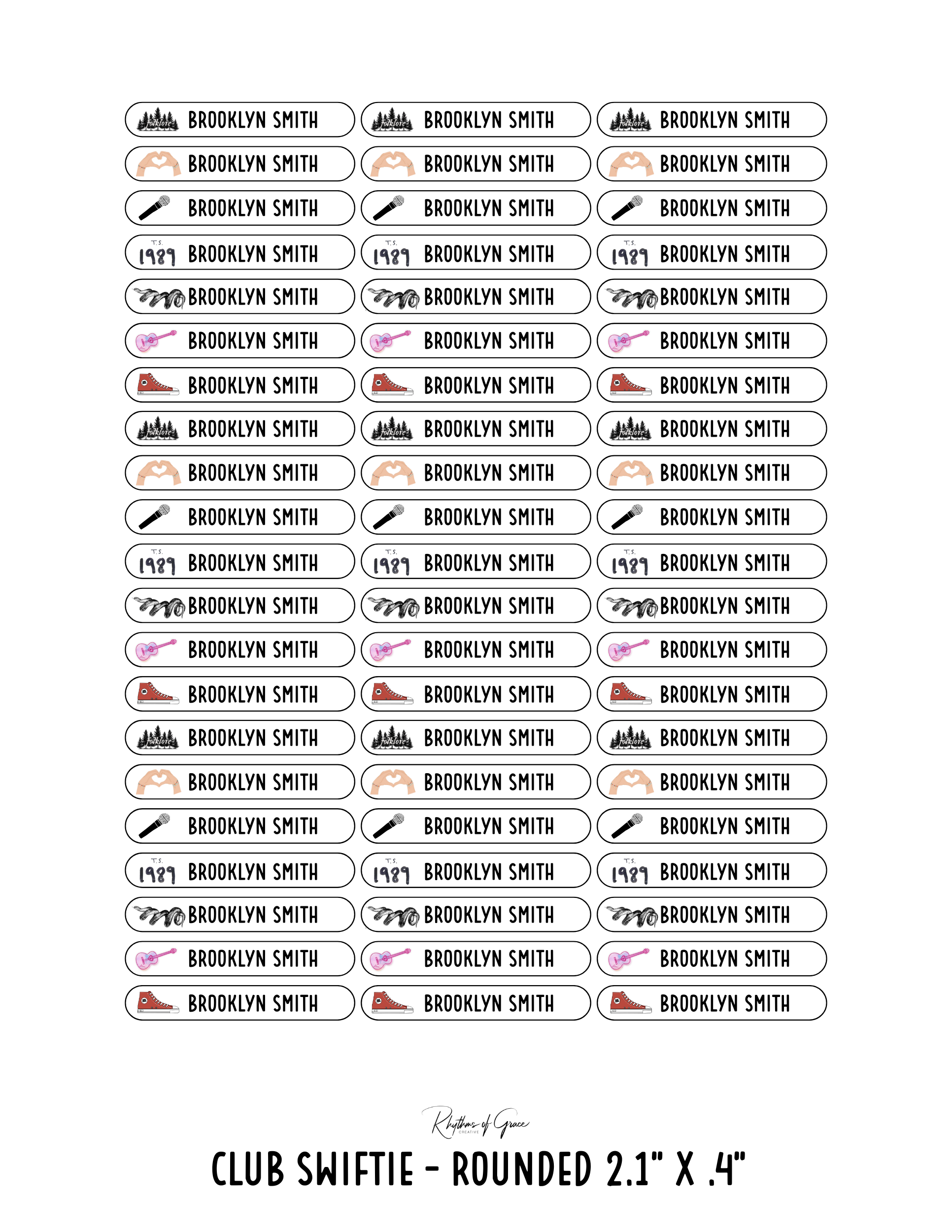Club Swiftie / Rounded Edges / Small Combo: Includes 21 small rounded labels (2.1" x .4") and 21 medium rounded labels (2.2" x .7") - 1 sheet