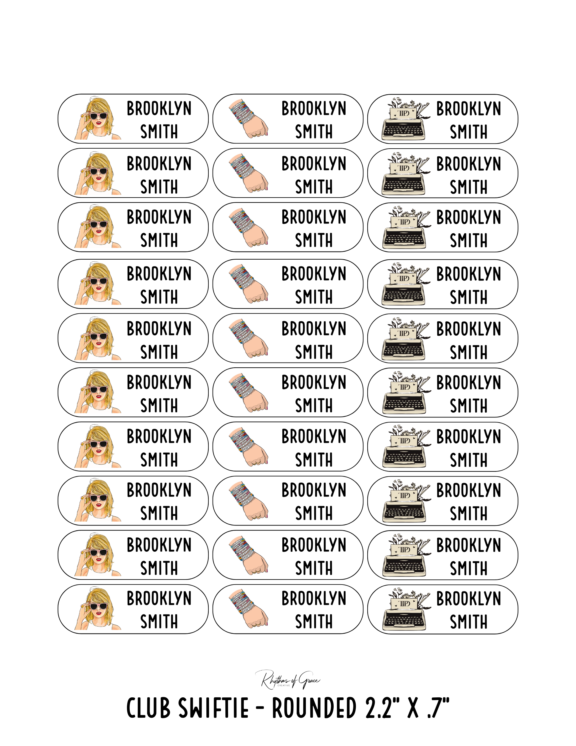 Club Swiftie / Rounded Edges / Large: Includes 10 large rounded labels (3.1" x 1.5") - 1 sheet