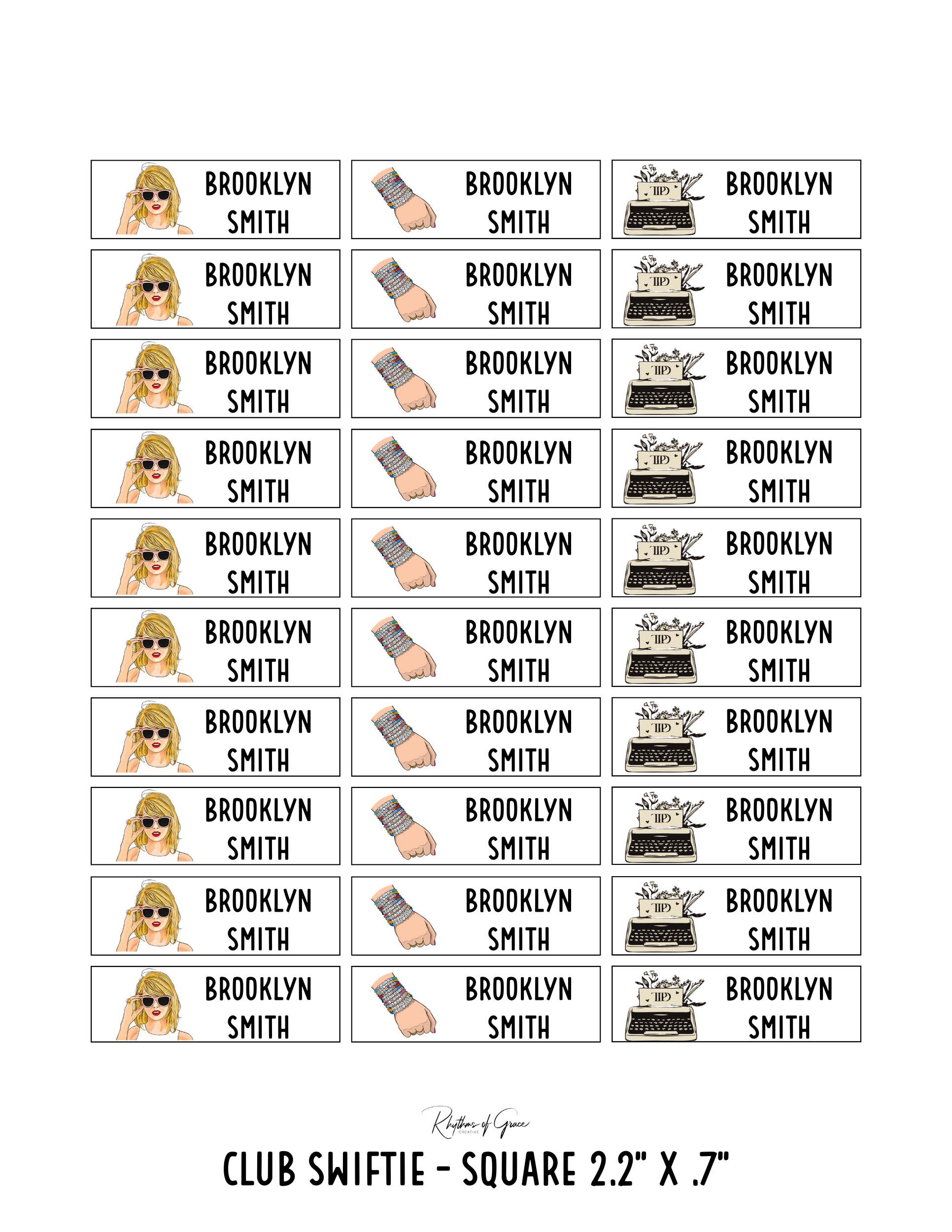 Club Swiftie / Rounded Edges / Large Combo: Includes 62 small labels - 30 med labels - 10 large labels (3 sheets)