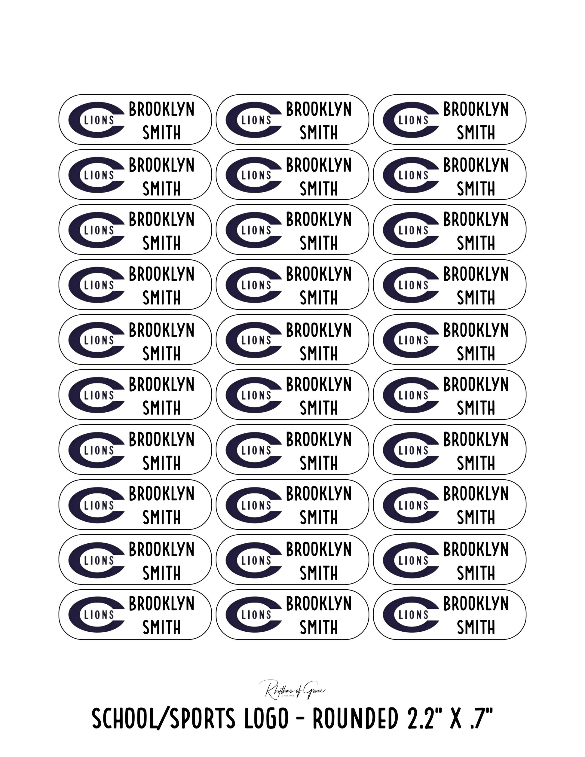 School or Sports Logo / Rounded Edges / Large: Includes 10 large rounded labels (3.1" x 1.5") - 1 sheet