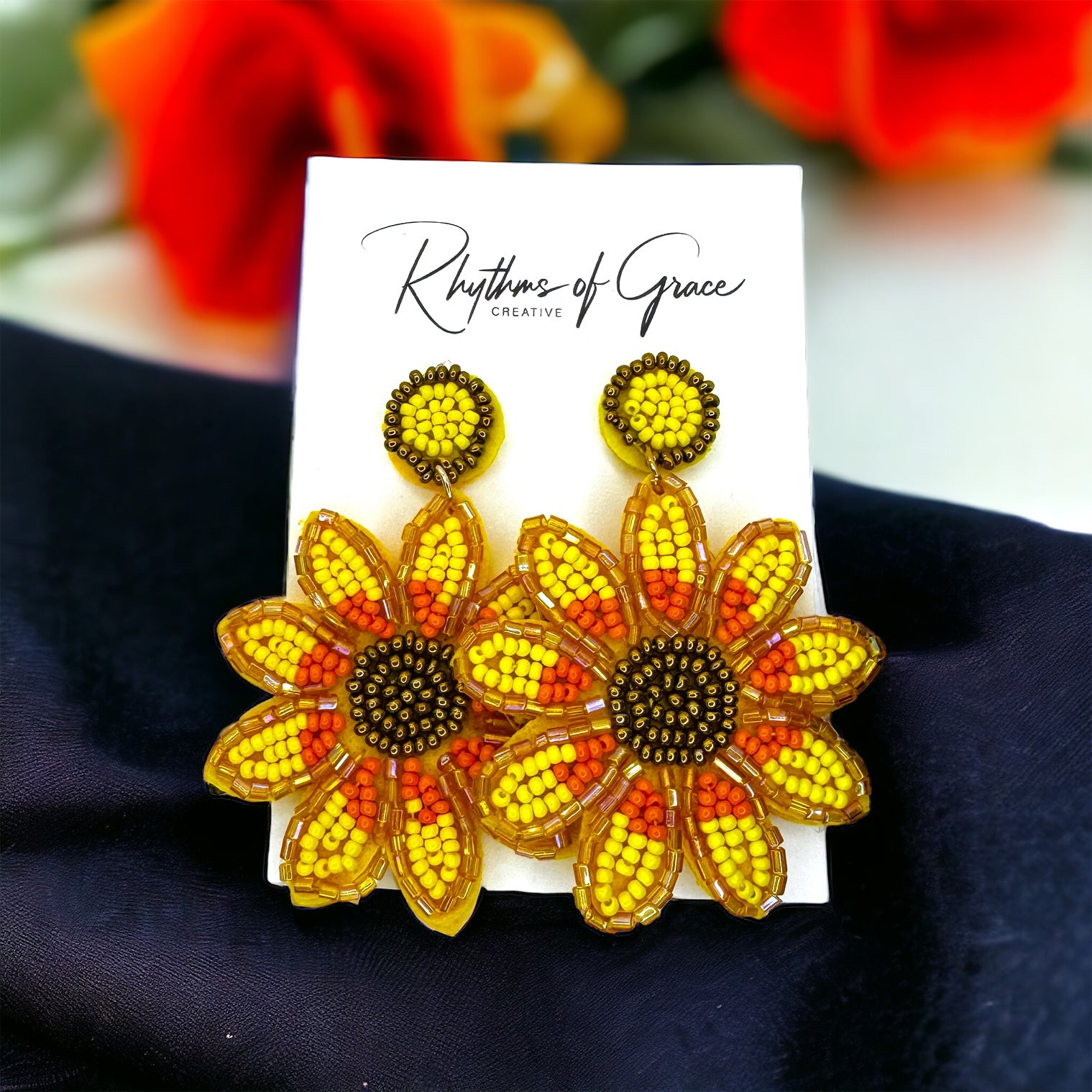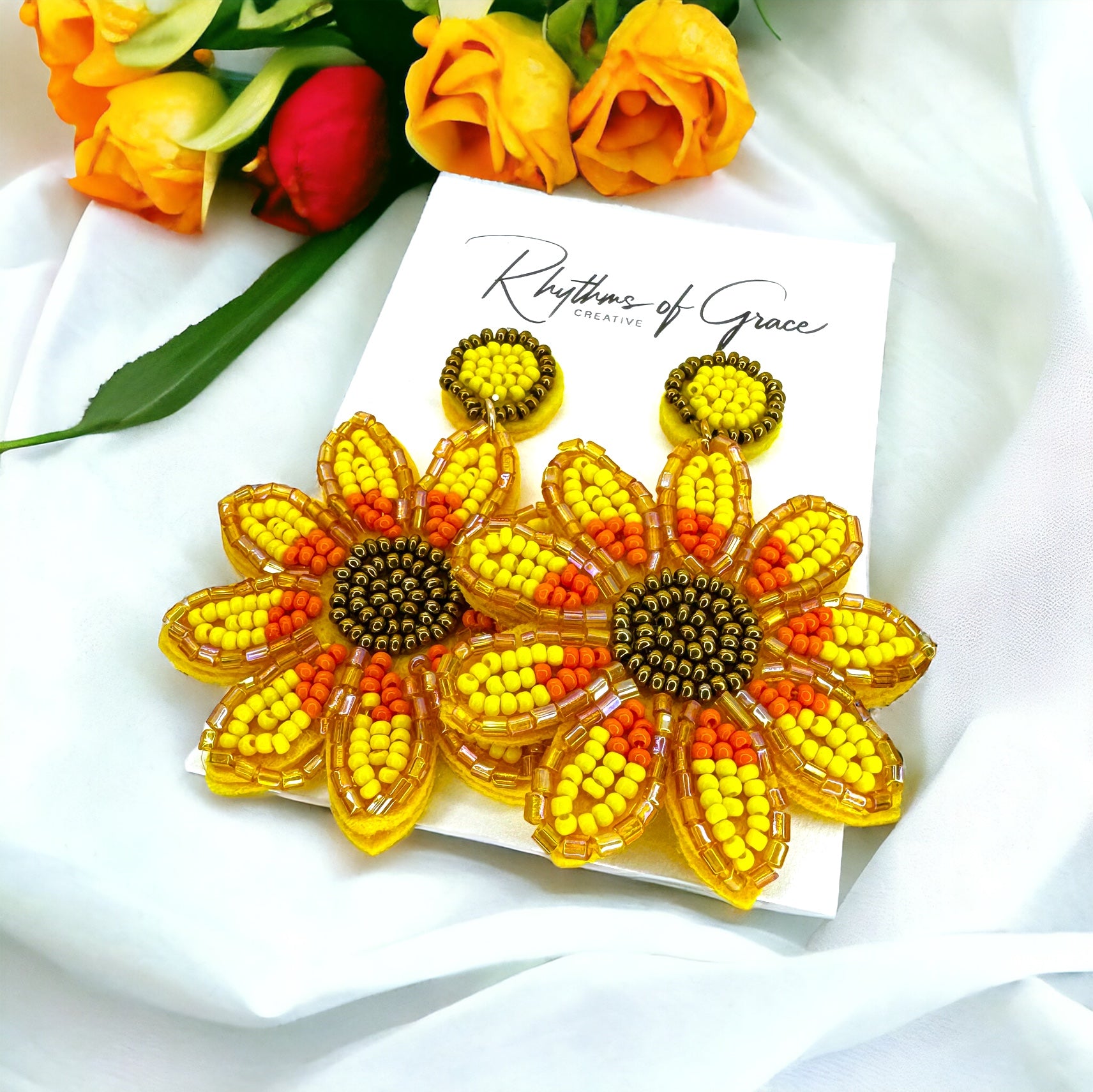 Brighten Your Day with Our Beaded Sunflower Earrings! 🌼