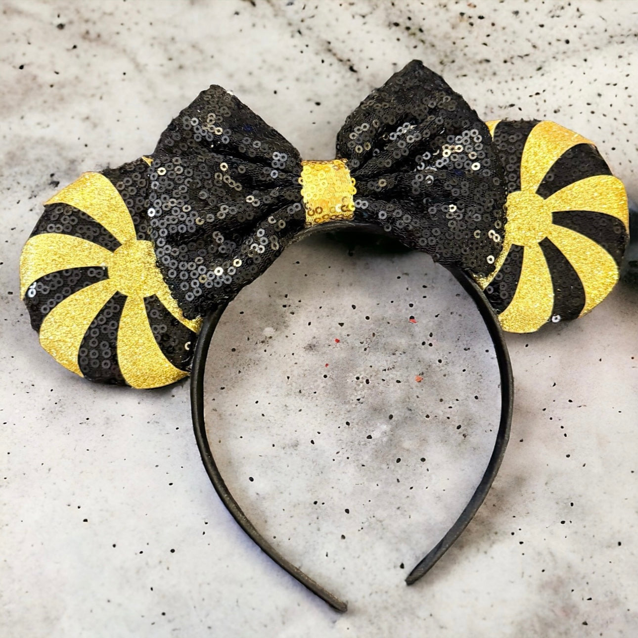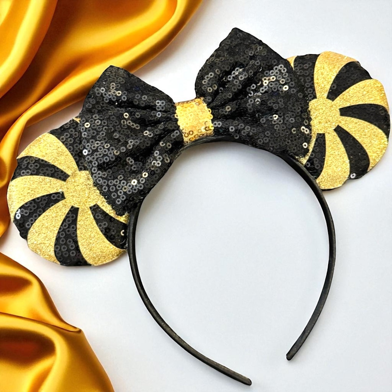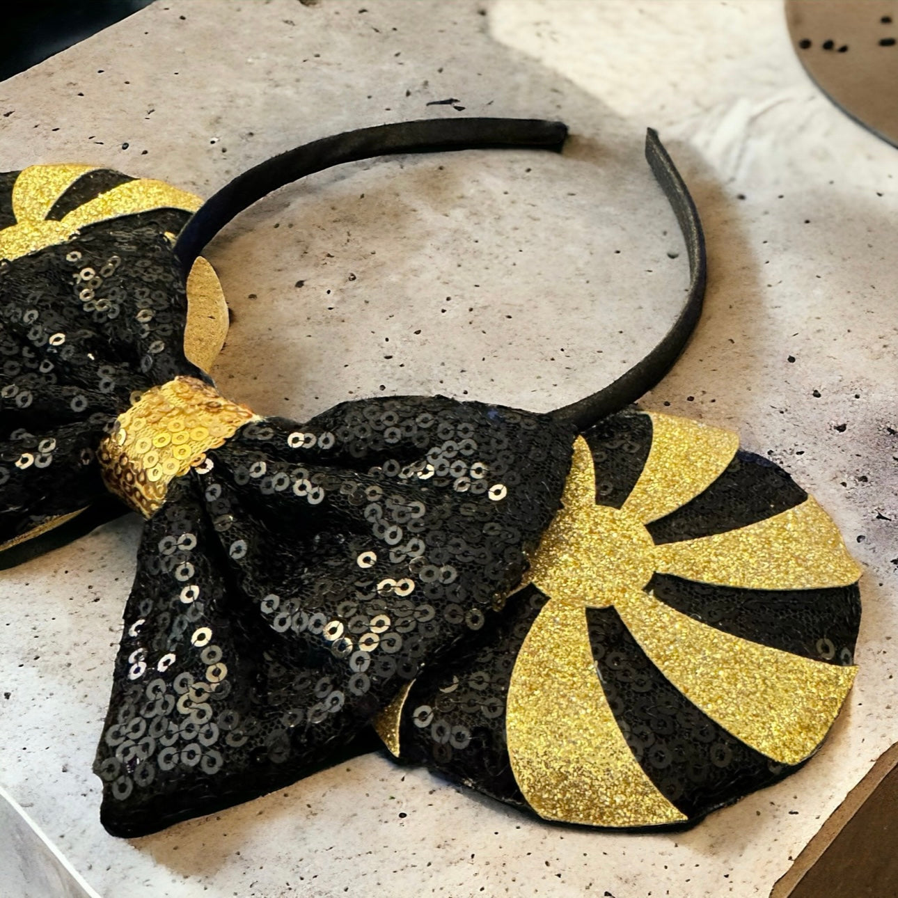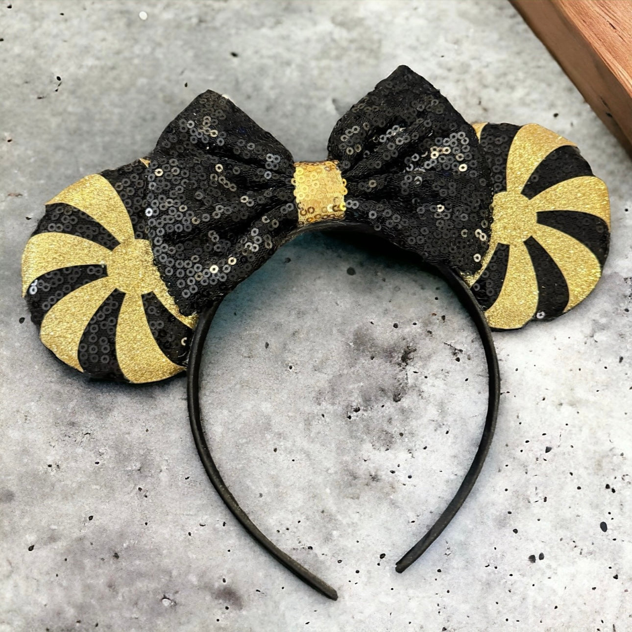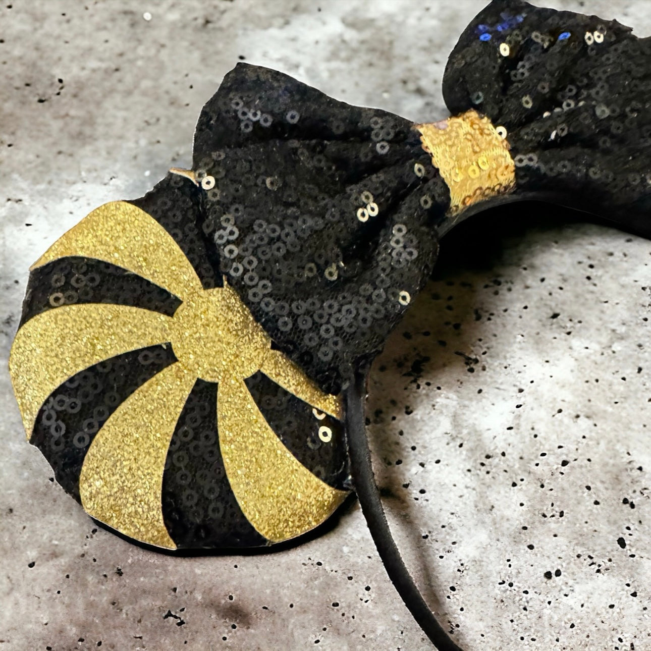 Black and Gold Sequin Mouse Ears - Perfect for New Orleans Saints Fans!