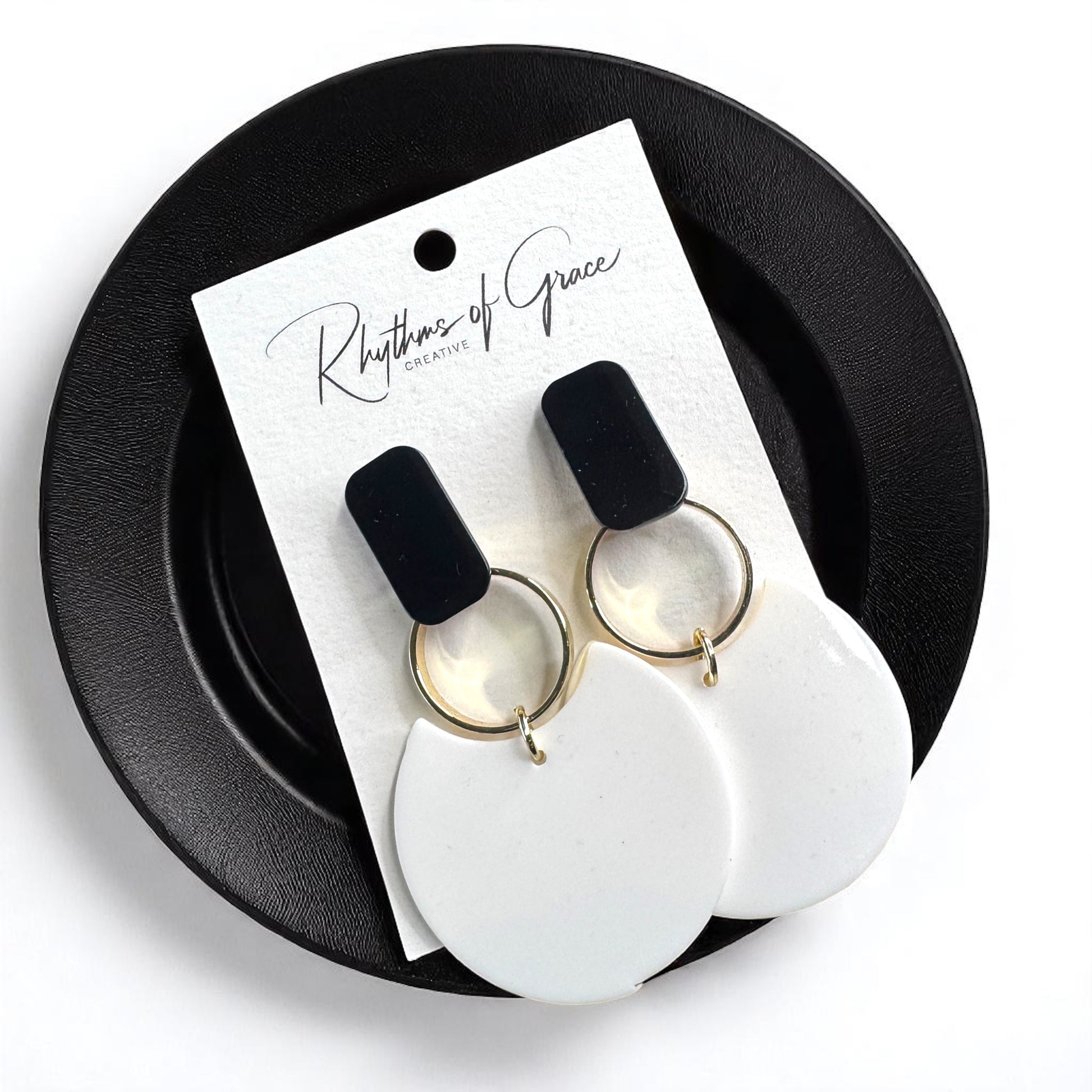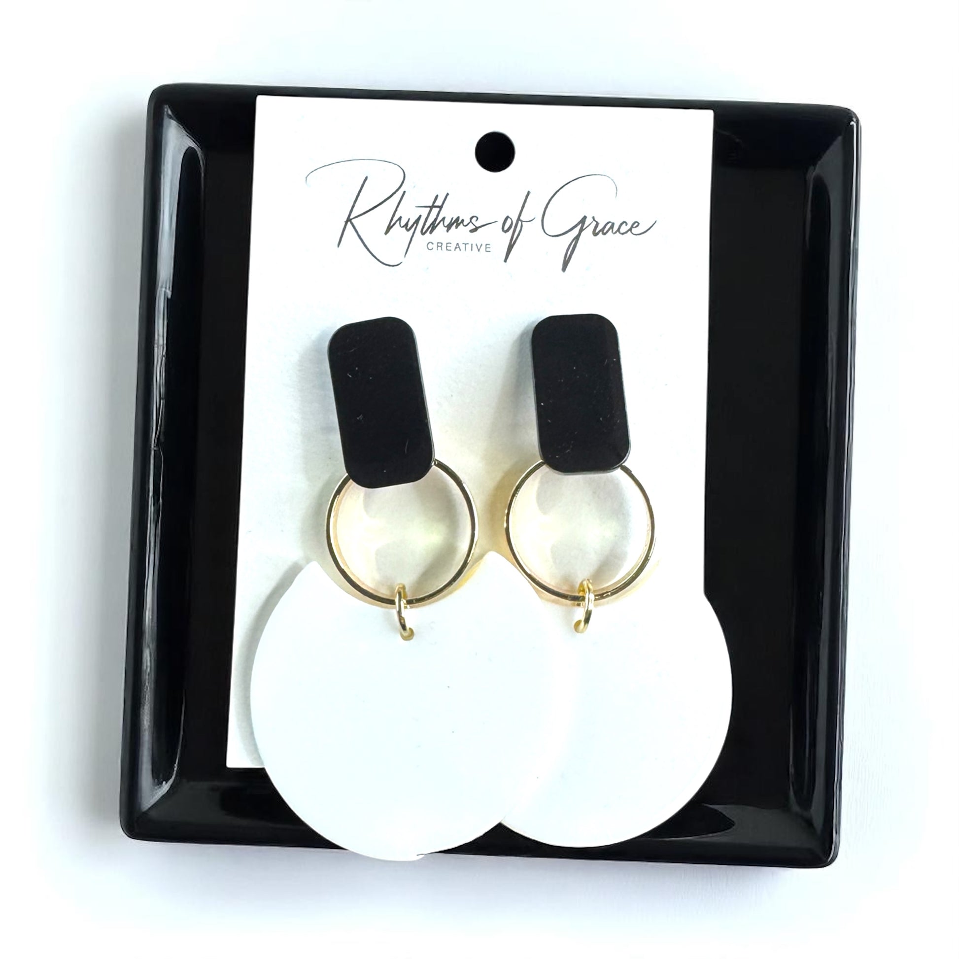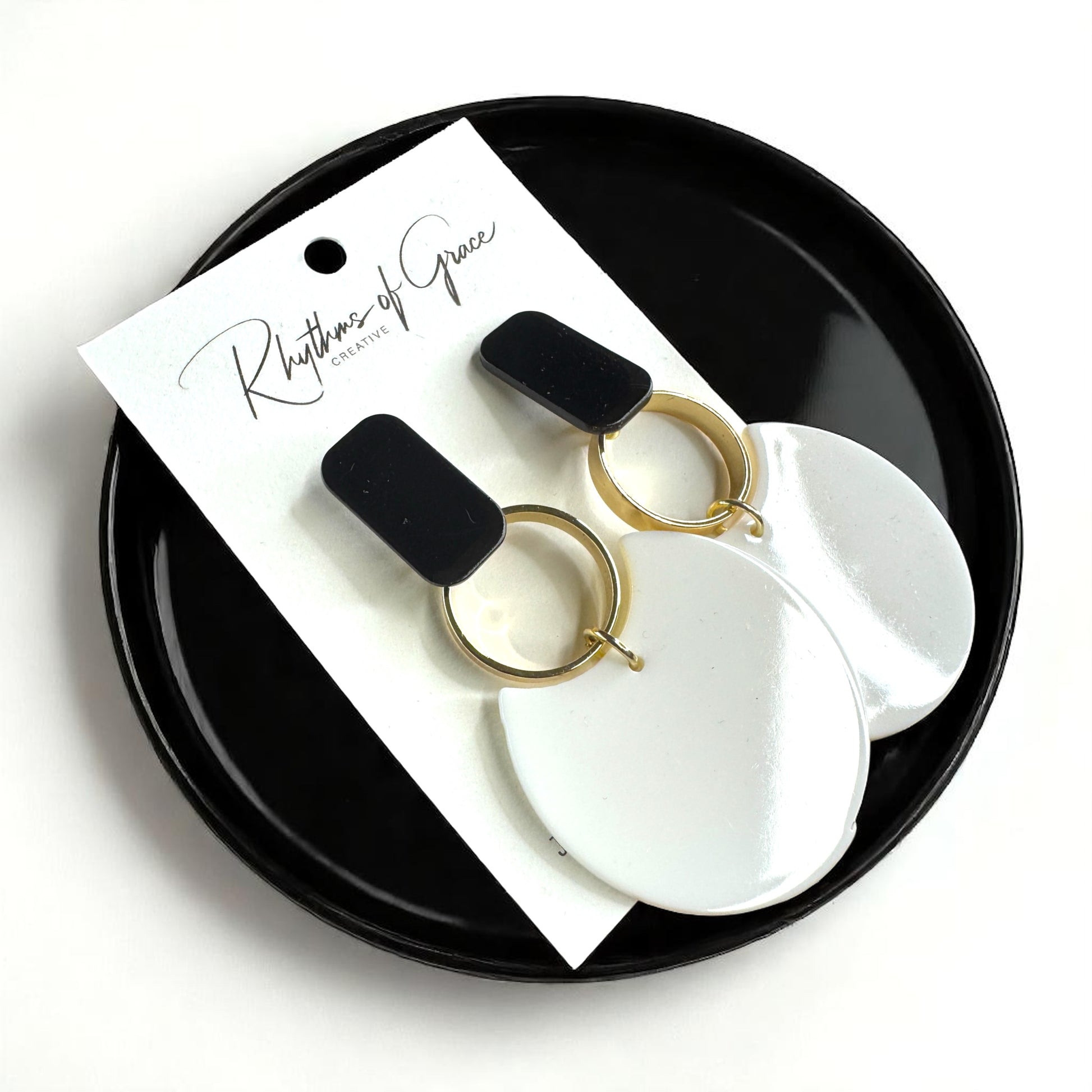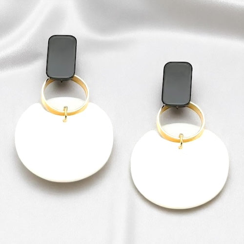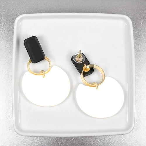 🌟 Elevate your elegance with these stunning black and white dangle earrings! Perfect for adding a splash of sophistication to any outfit, from game day glam to everyday chic.