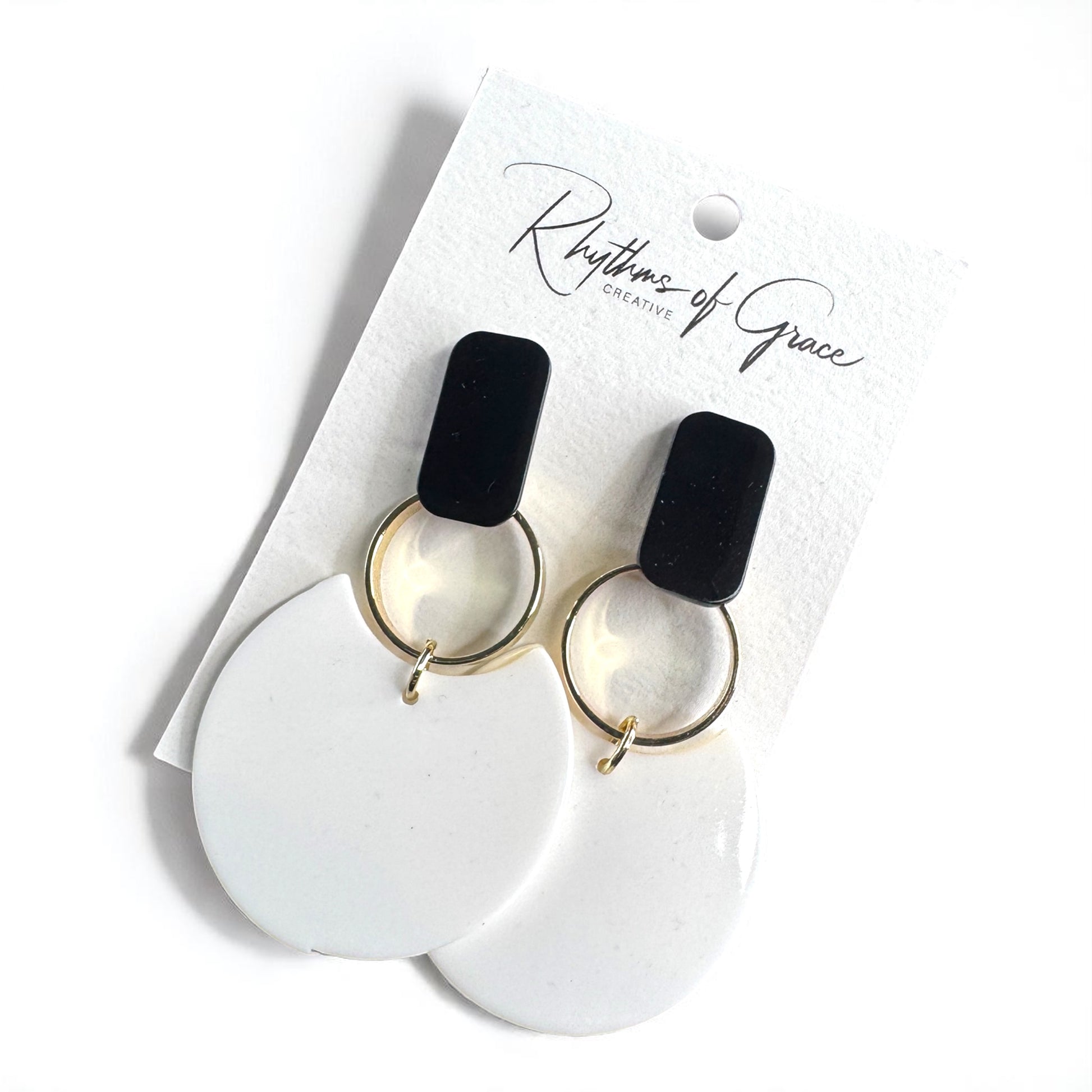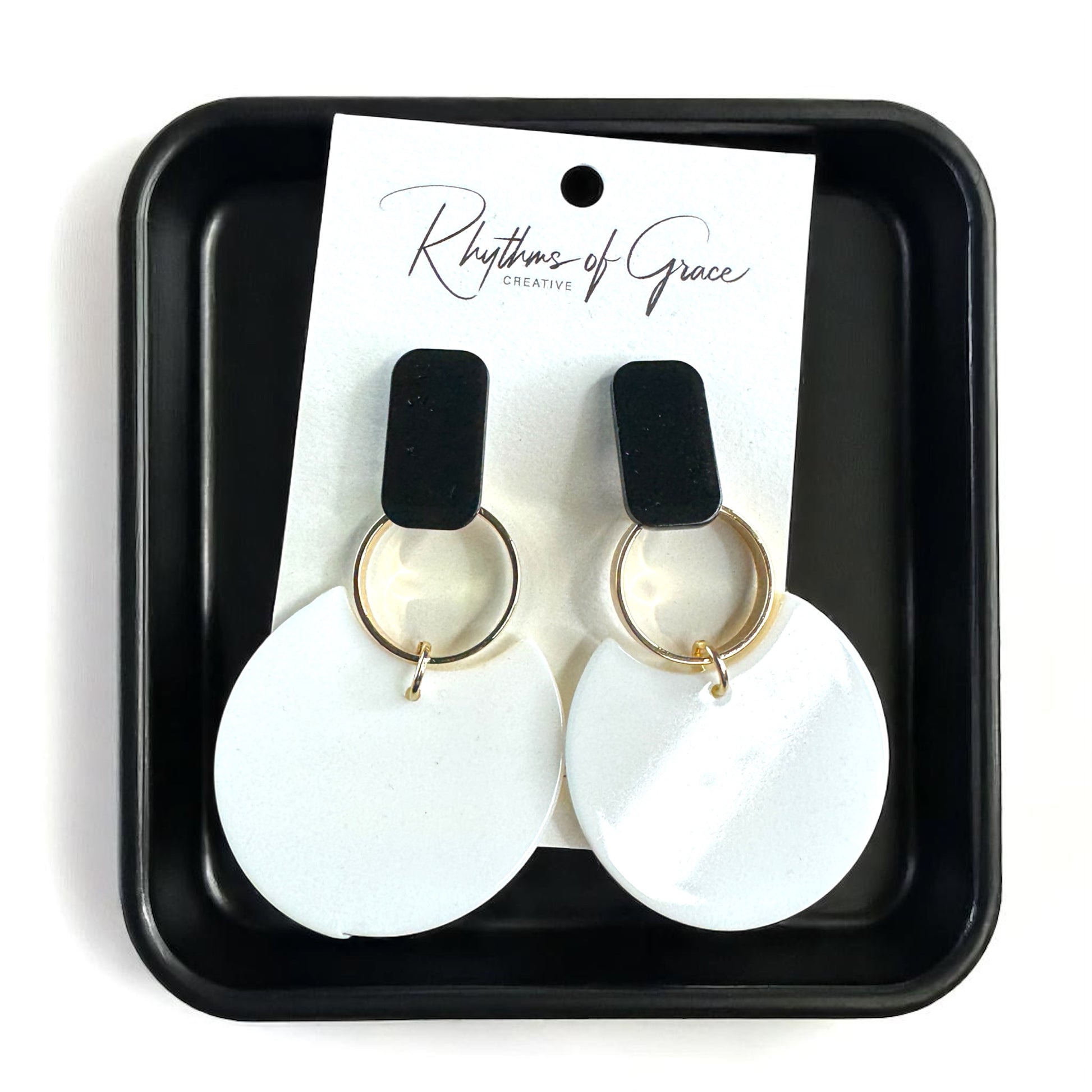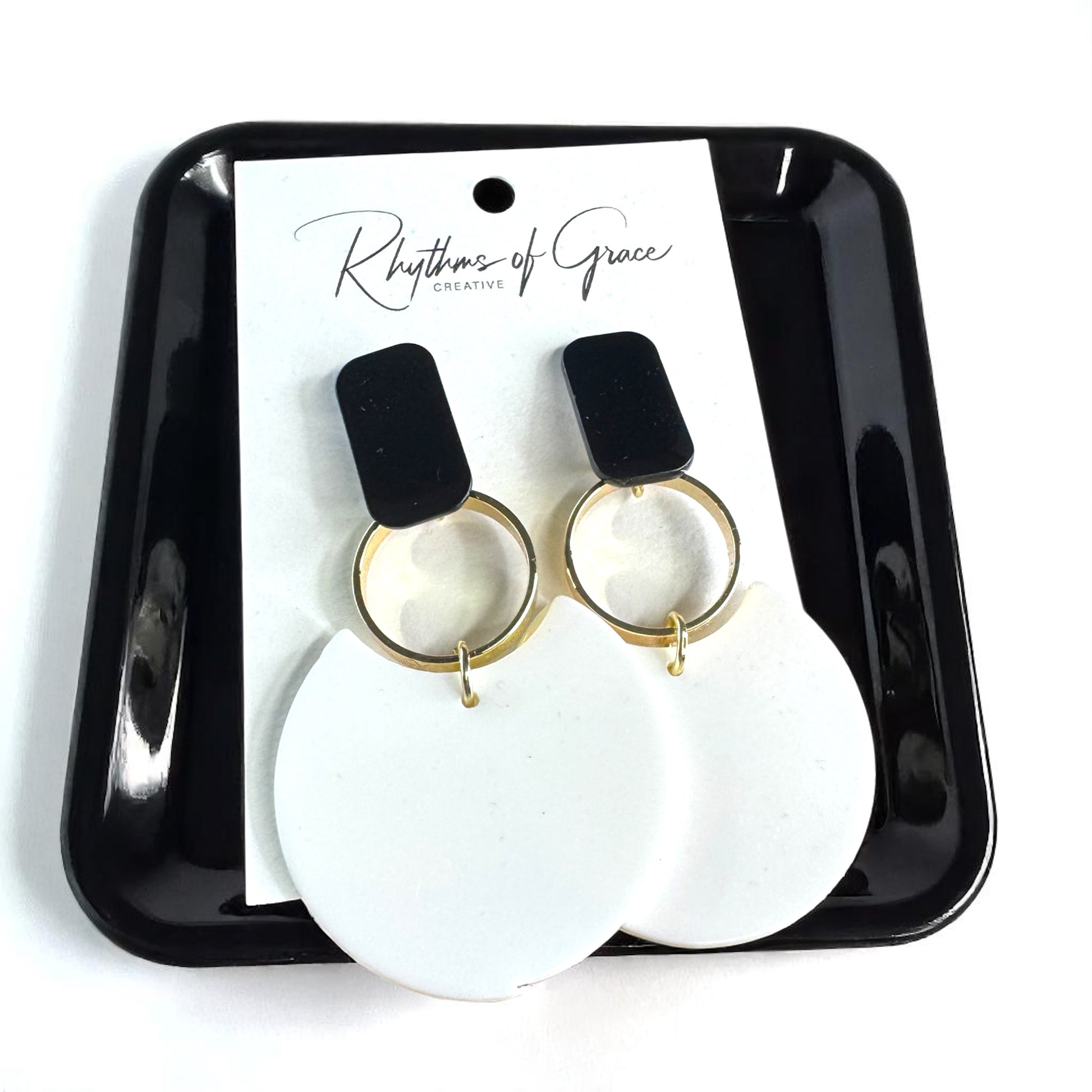 🌟 Elevate your elegance with these stunning black and white dangle earrings! Perfect for adding a splash of sophistication to any outfit, from game day glam to everyday chic.