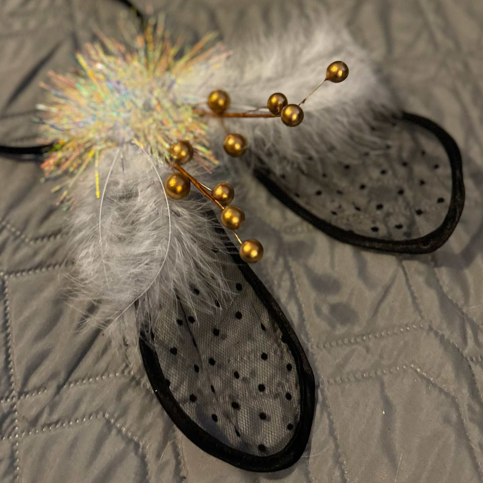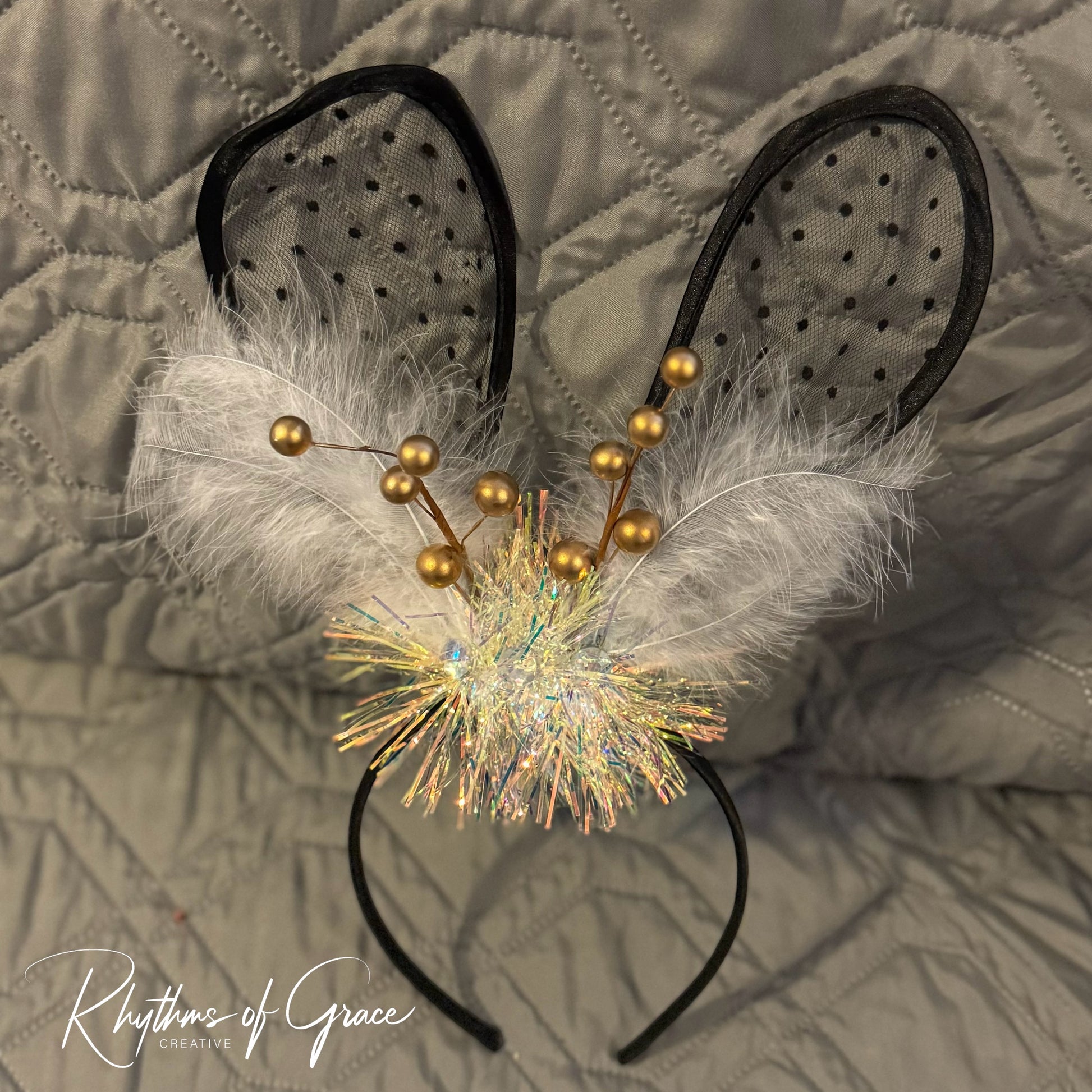 Get ready for Easter with our adorable bunny ears with feathers and black lace! These playful accessories are the perfect way to hop into the holiday spirit. Add a touch of whimsy to your Easter outfit and let the festivities begin!
