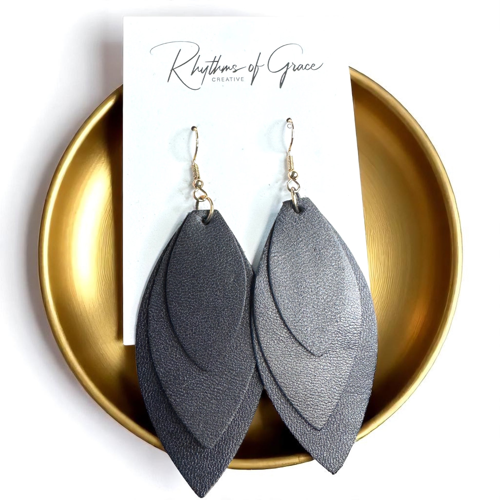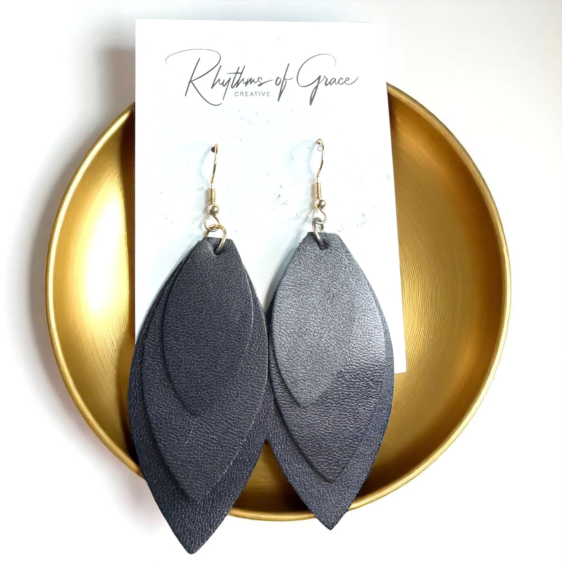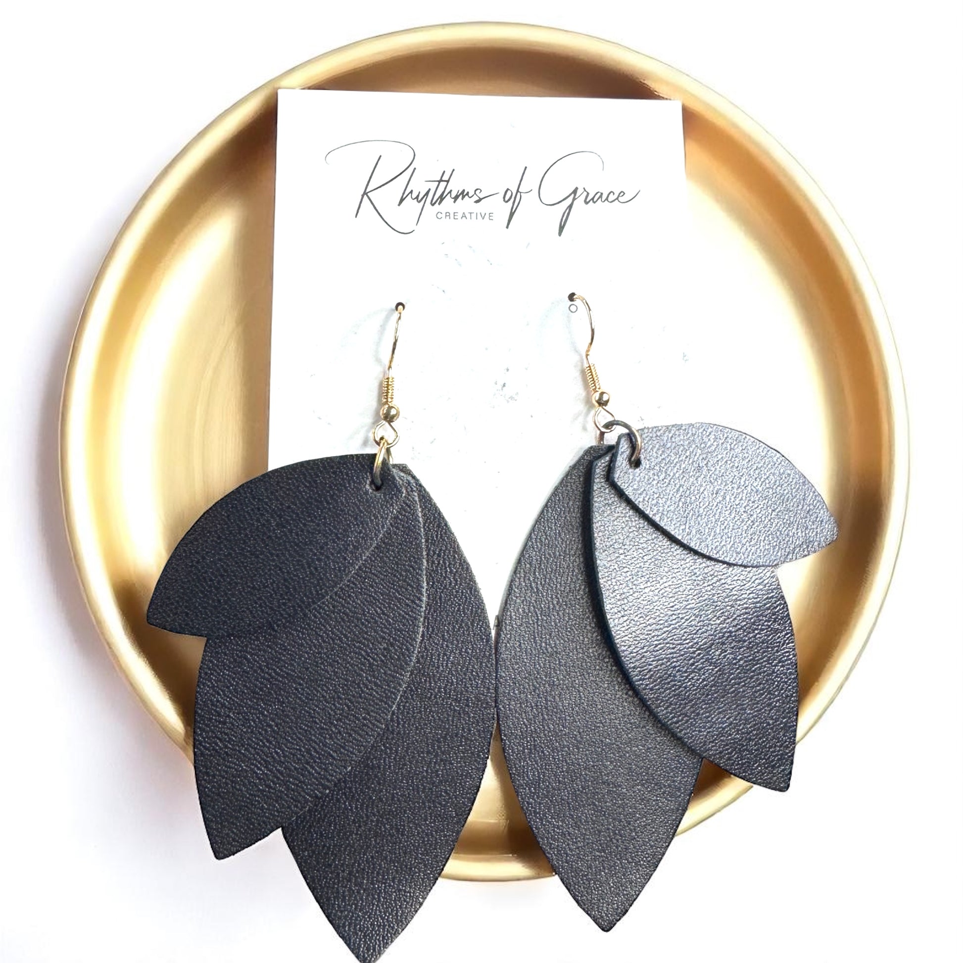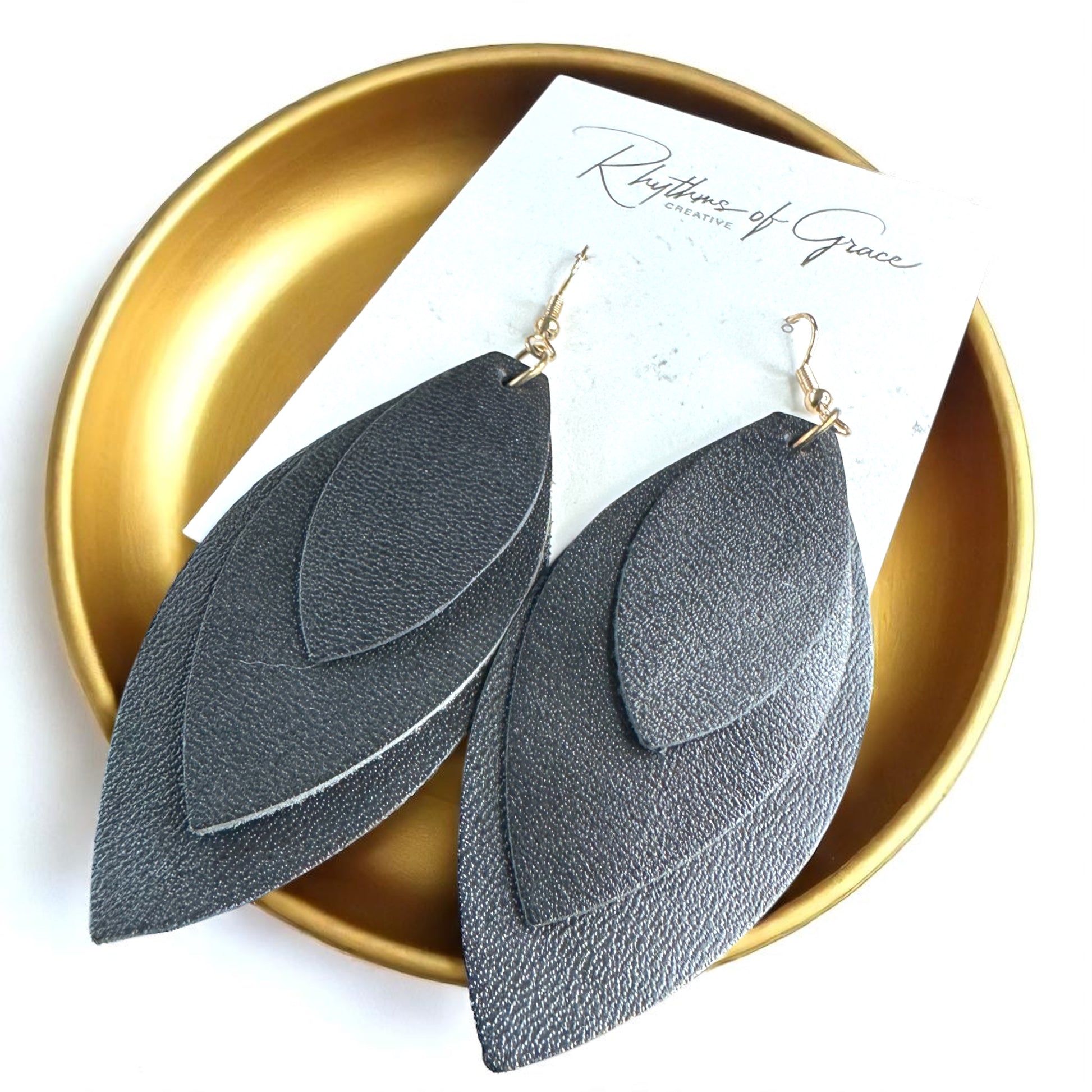 Bold Black Layered Faux Leather Earrings - Lightweight Drop Design!