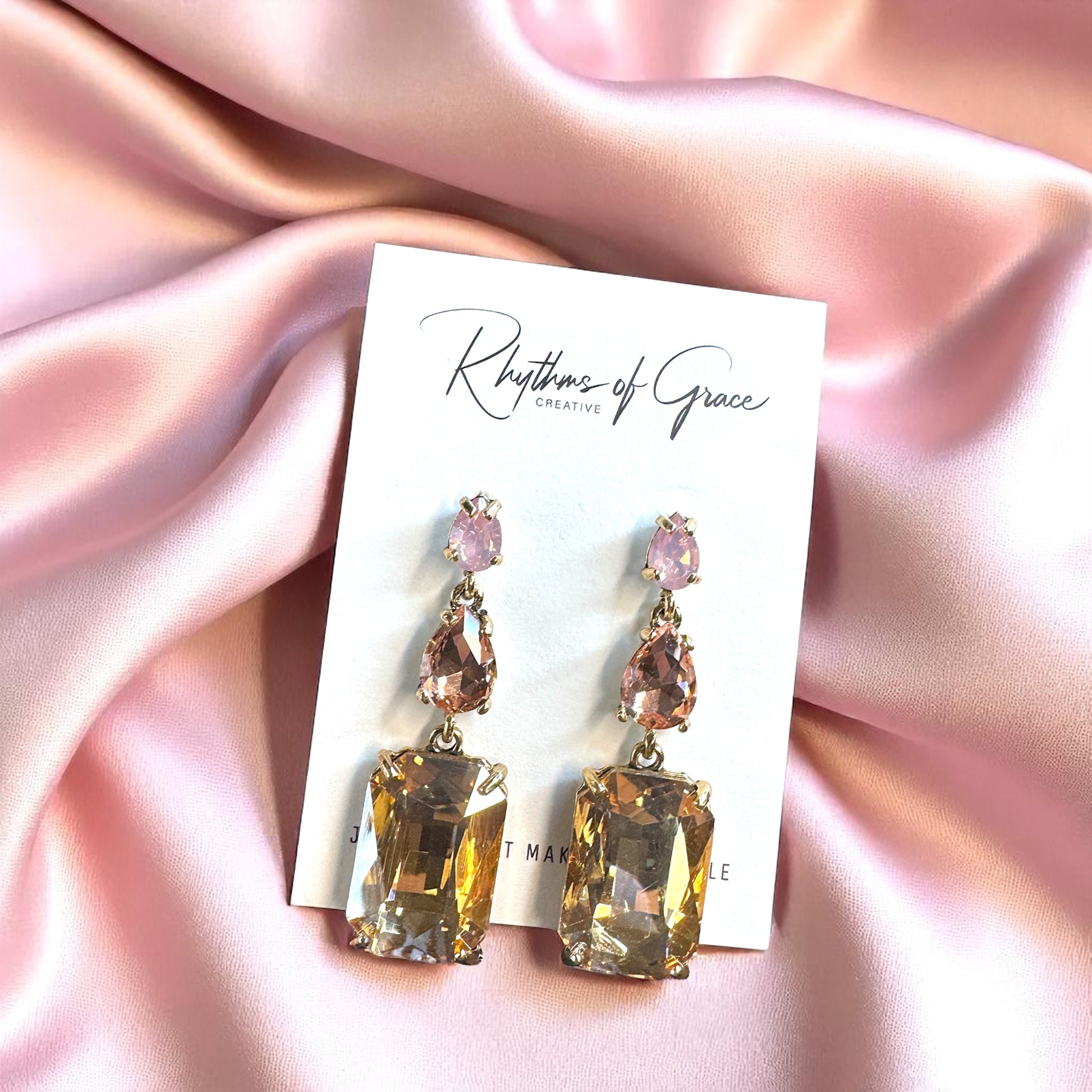 Illuminate your look with our stunning pale pink rhinestone earrings! These eye-catching drop earrings are not just accessories; they are statements of elegance that beautifully complement any outfit. Whether you're dressing up for springtime celebrations, an Easter brunch, or gearing up for that upcoming school dance, these earrings are the perfect finishing touch.
