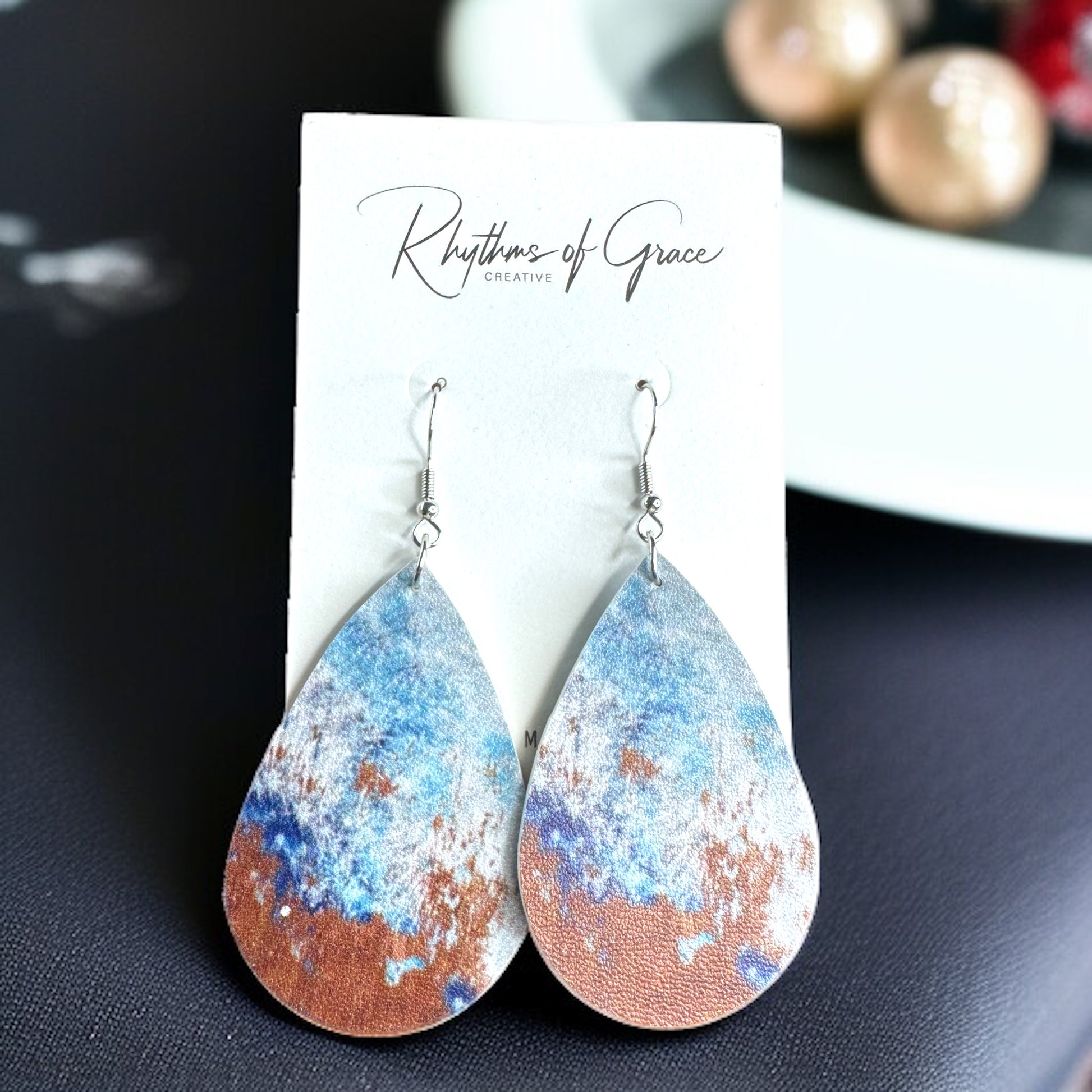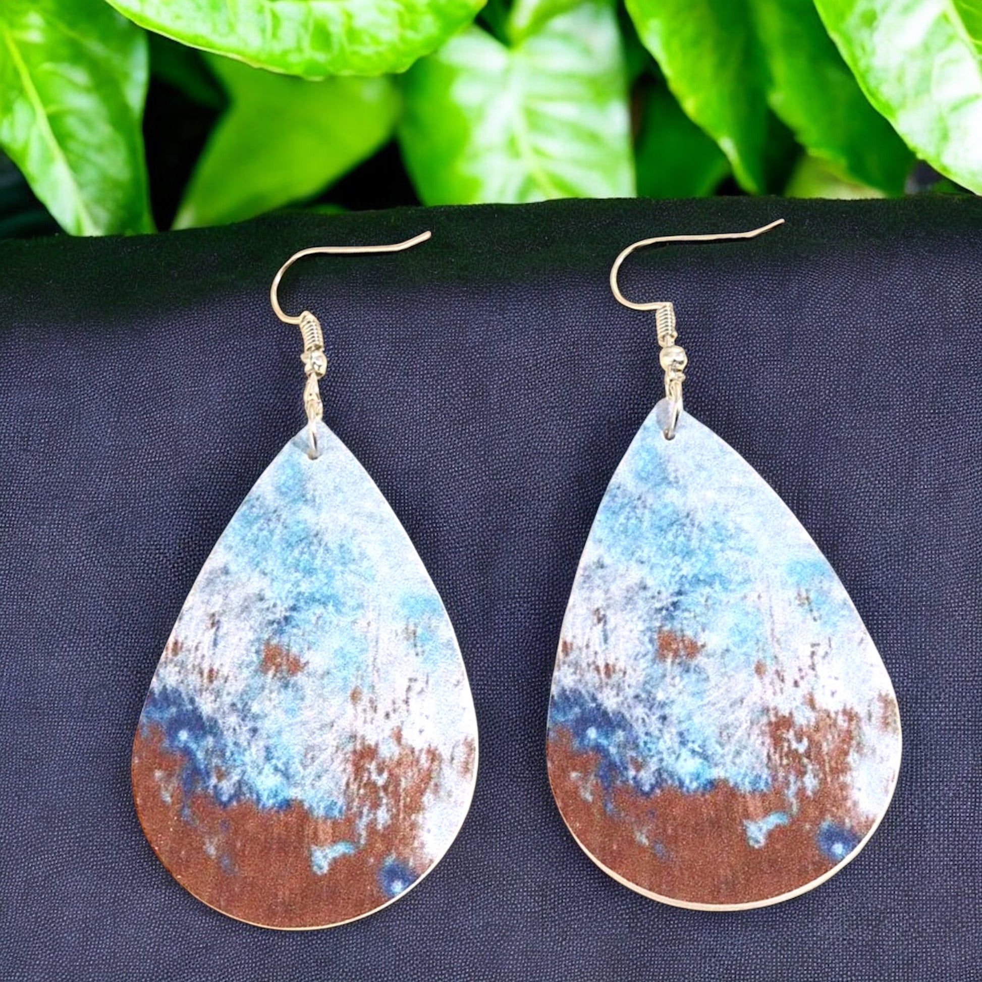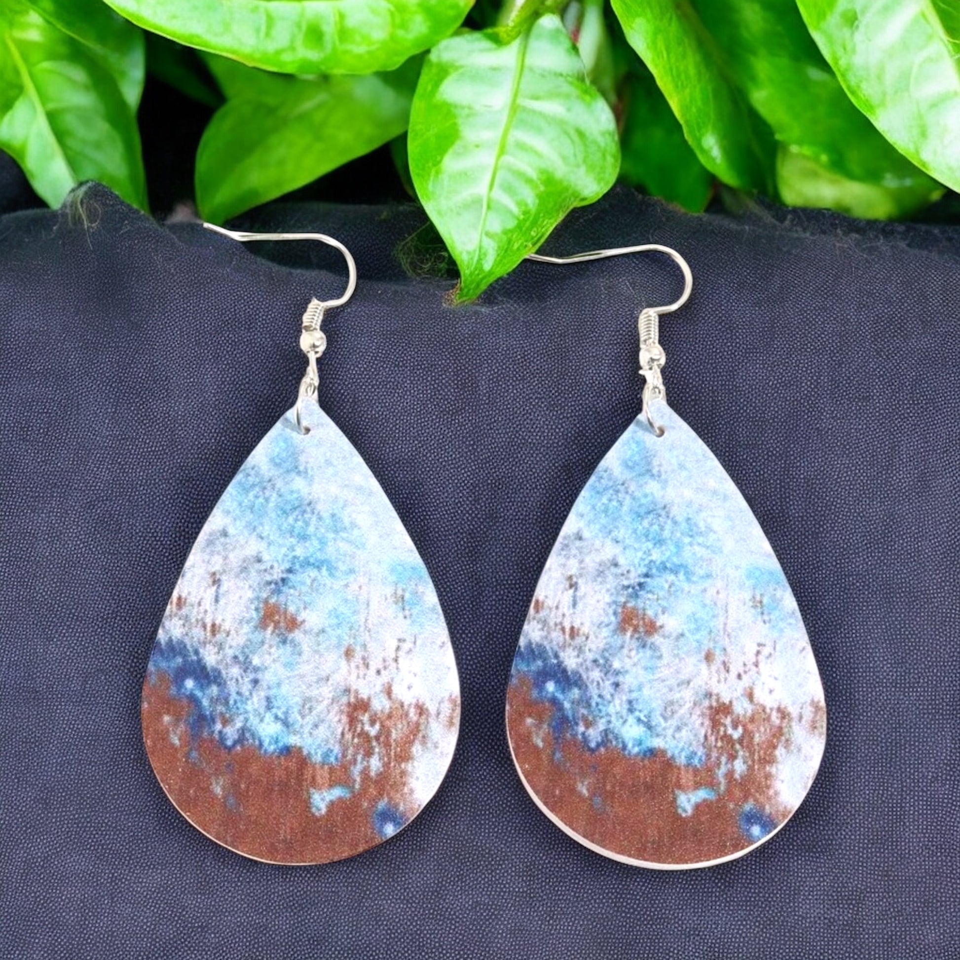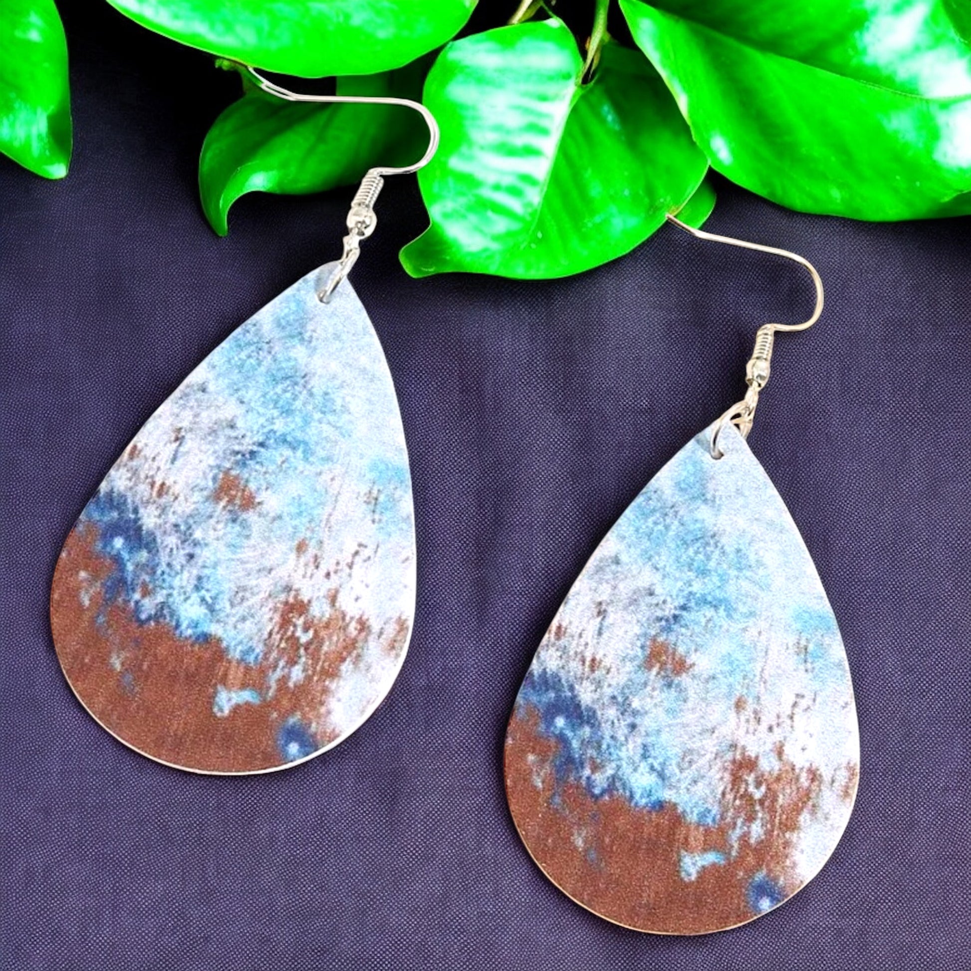 Elevate Your Style with Blue, White & Brown Teardrop Earrings! 🌟